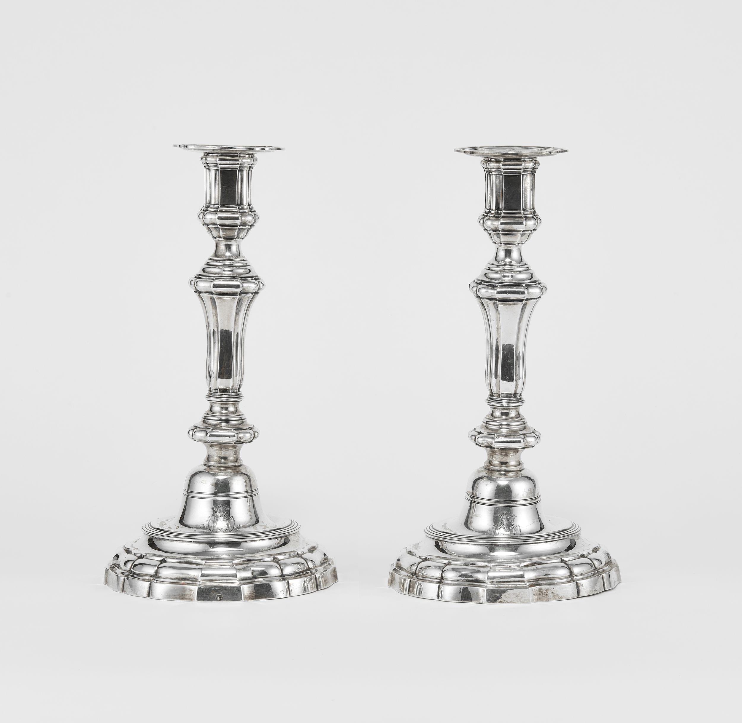 Cadrans émaillés blancs, aiguilles dorées, chiffres romains noir...