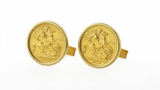 32. Paire de boutons de manchettes sertis de pièces à décor de Saint...