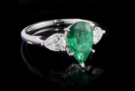 129. Bague sertie d'une émeraude taille poire (env. 1,9 ct) épaulée d...