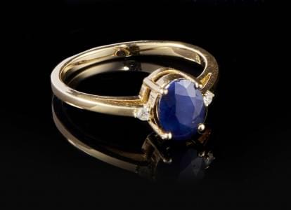 92. Bague sertie d'un saphir taille ovale (env. 1,3 ct) épaulé de de...