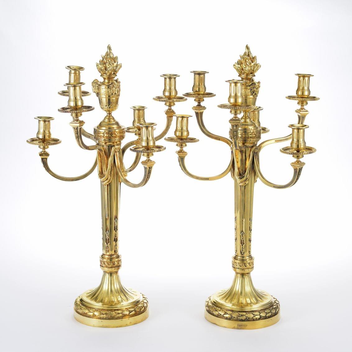 200. Paire de grands candélabres à six feux de style Louis XVI