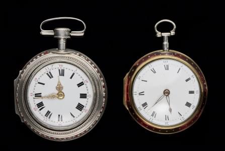 Cadrans émaillés blancs, aiguilles dorées et argentées, chiffres...