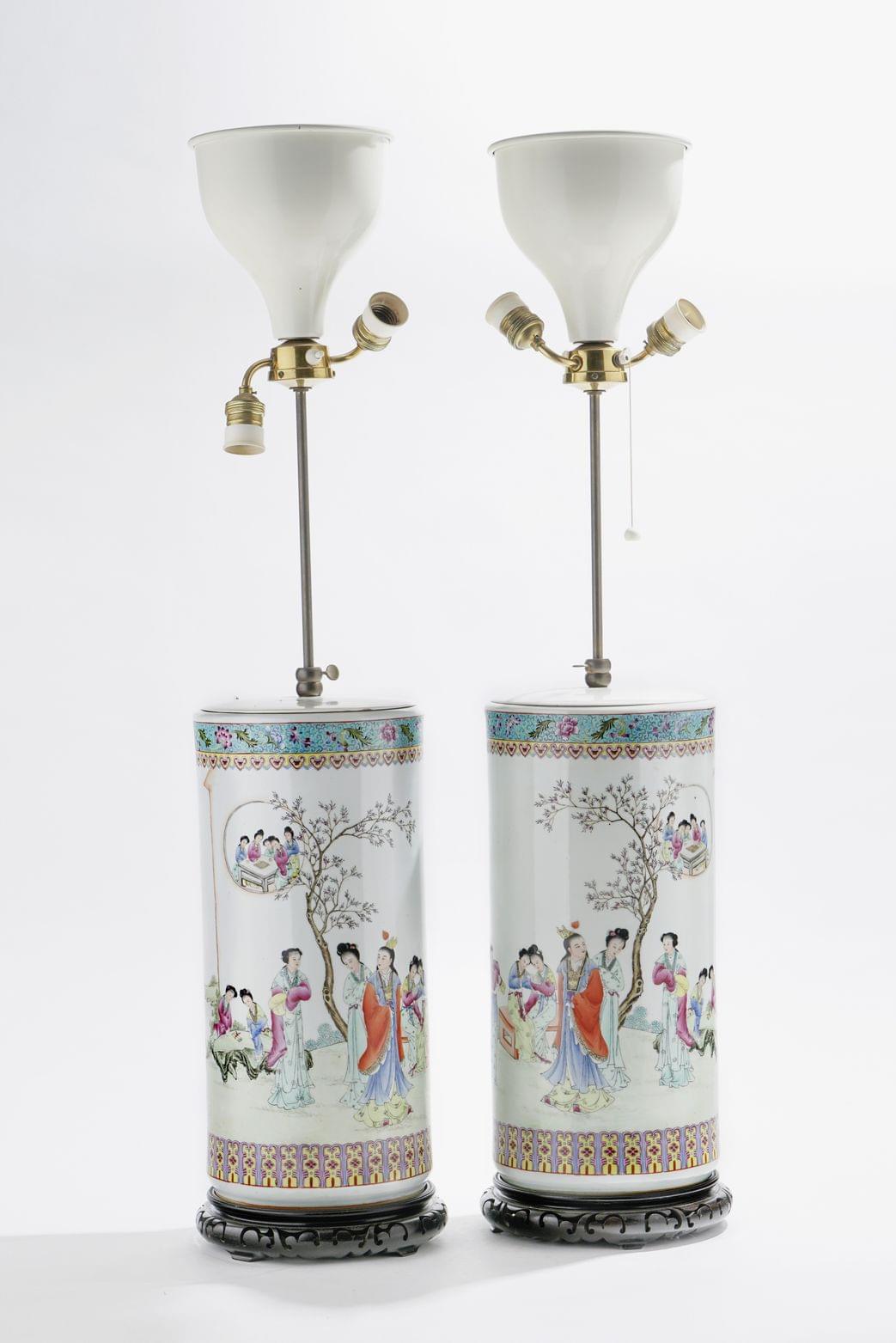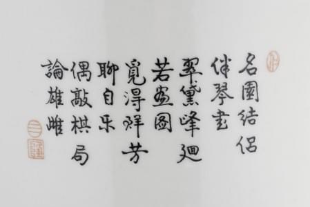Porcelaine émaillée polychrome à décor de personnages et poèmes, H 45 cm