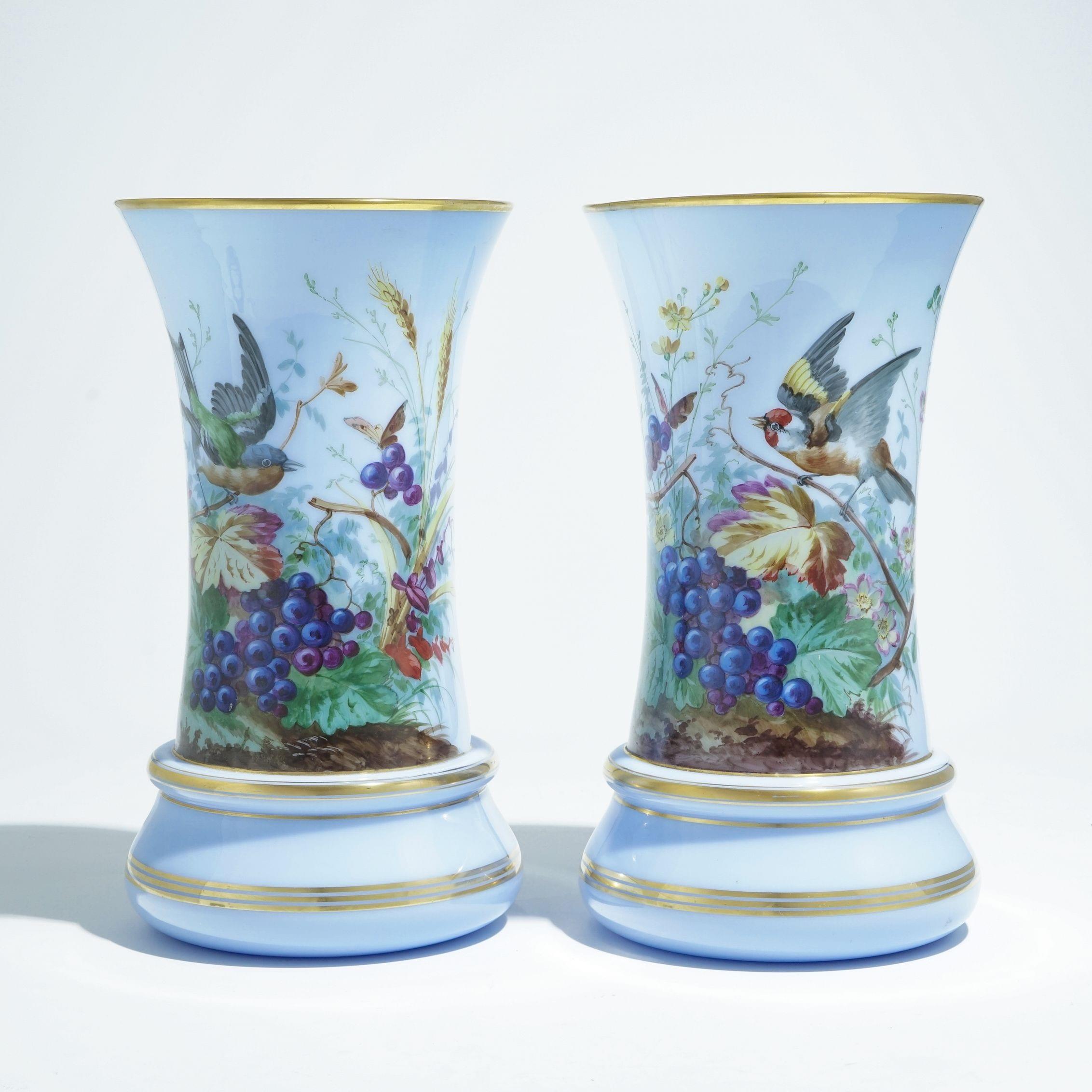 3828. Paire de grands vases rouleaux en opaline lavande, milieu XIXe s