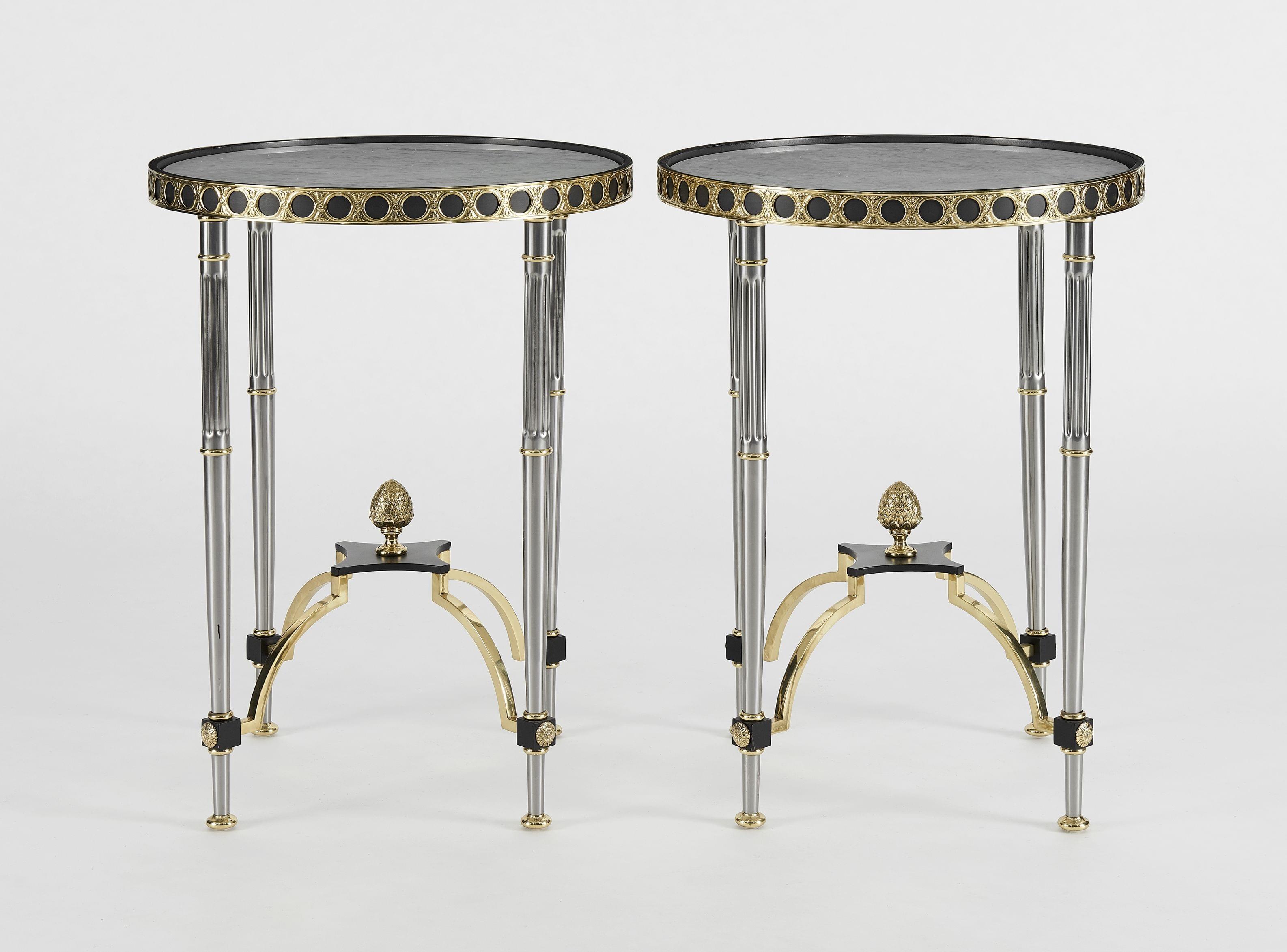 Métal laqué noir, laiton et acier, marbre blanc, 72x53 cm