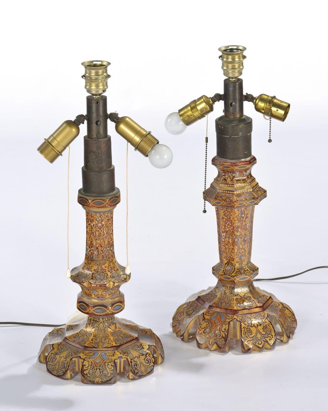 Turquie, Empire Ottoman, verre taillé émaillé bleu rouge et or, H 37 cm