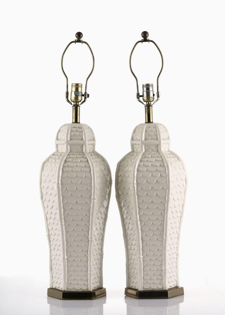 Pieds en laiton, céramique émaillée blanc, H 79 cm