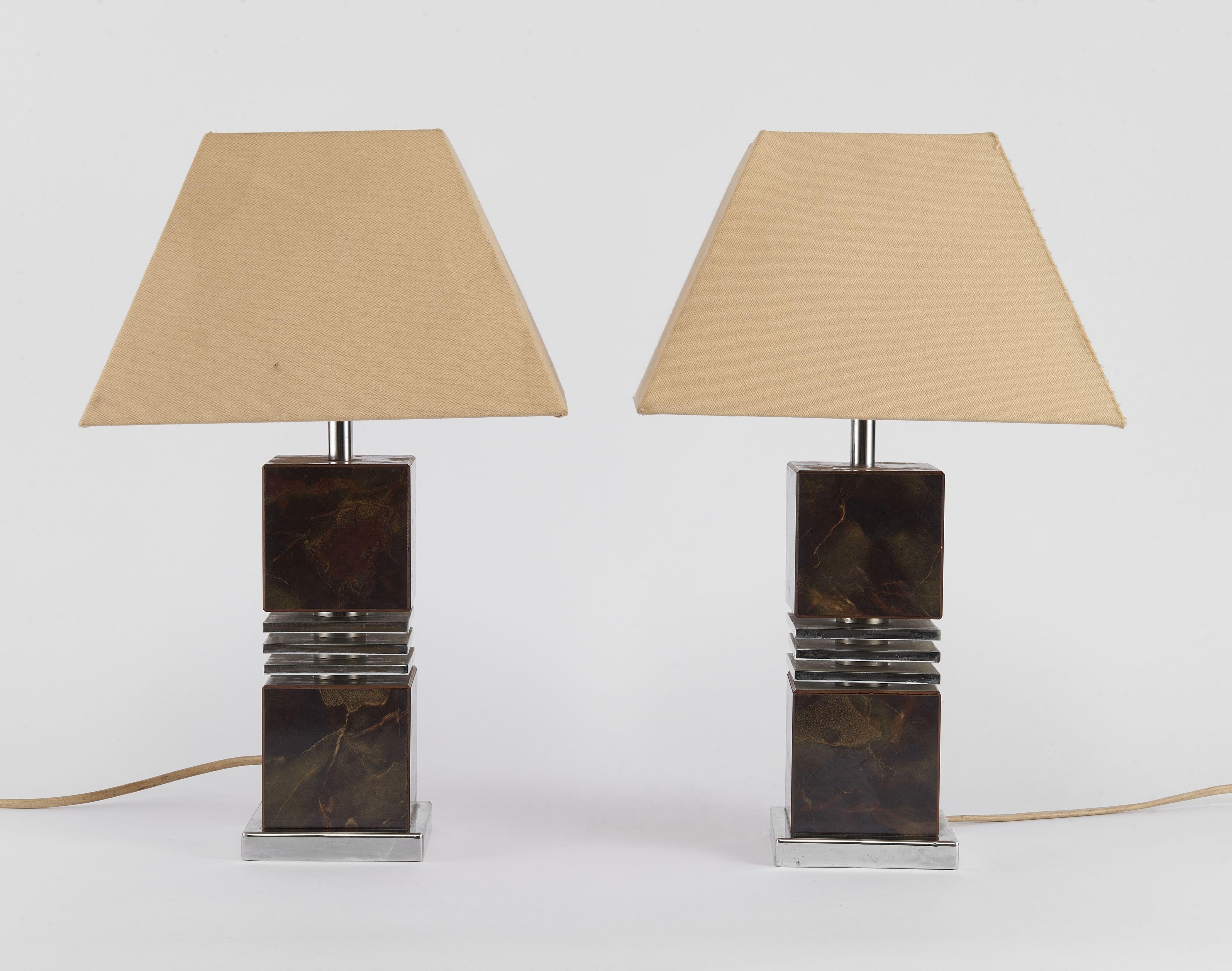 Matériau composite laqué façon marbre et métal chromé, H 21,5 cm