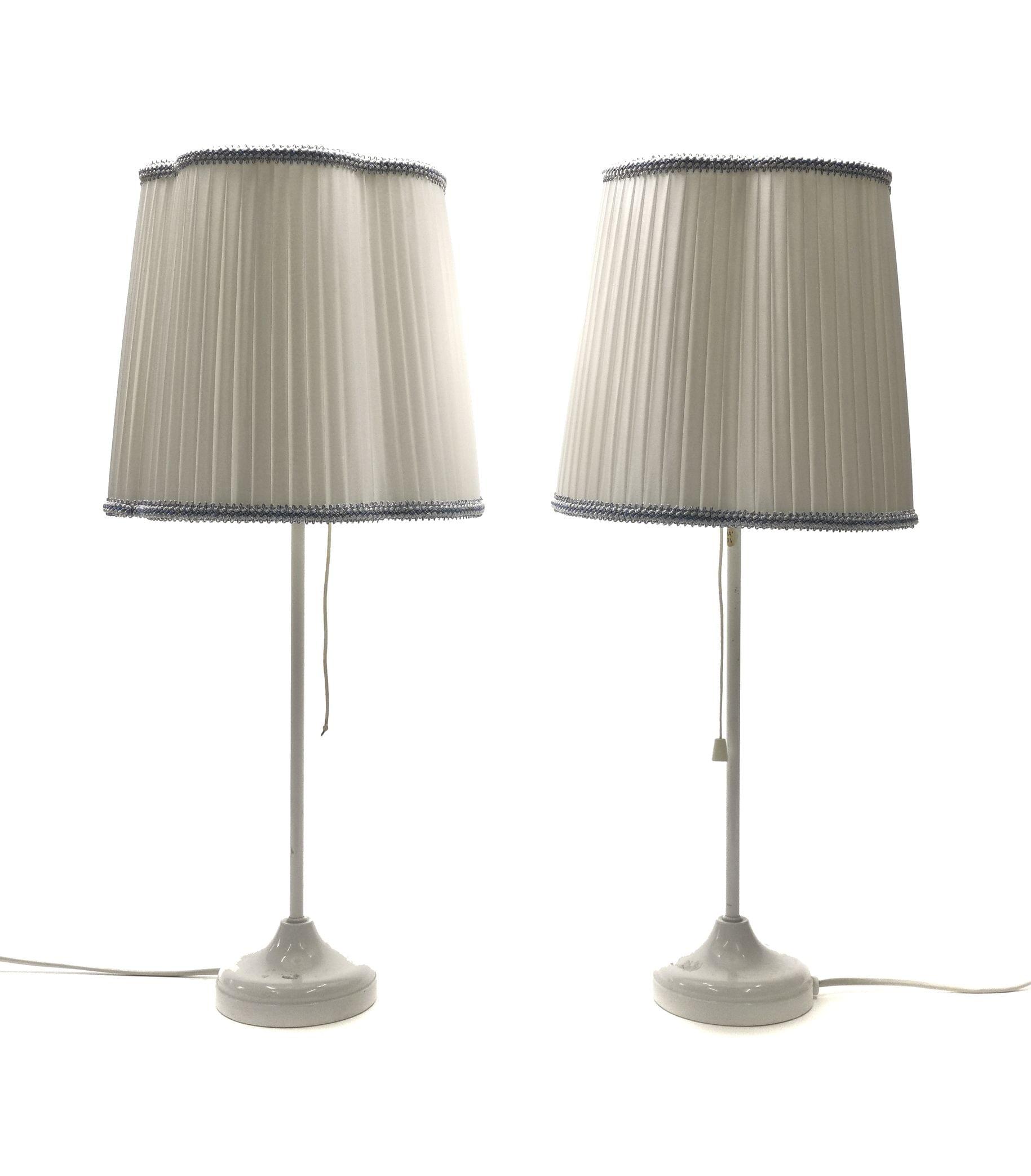 Métal laqué blanc, abat-jour plissé H 56 cm