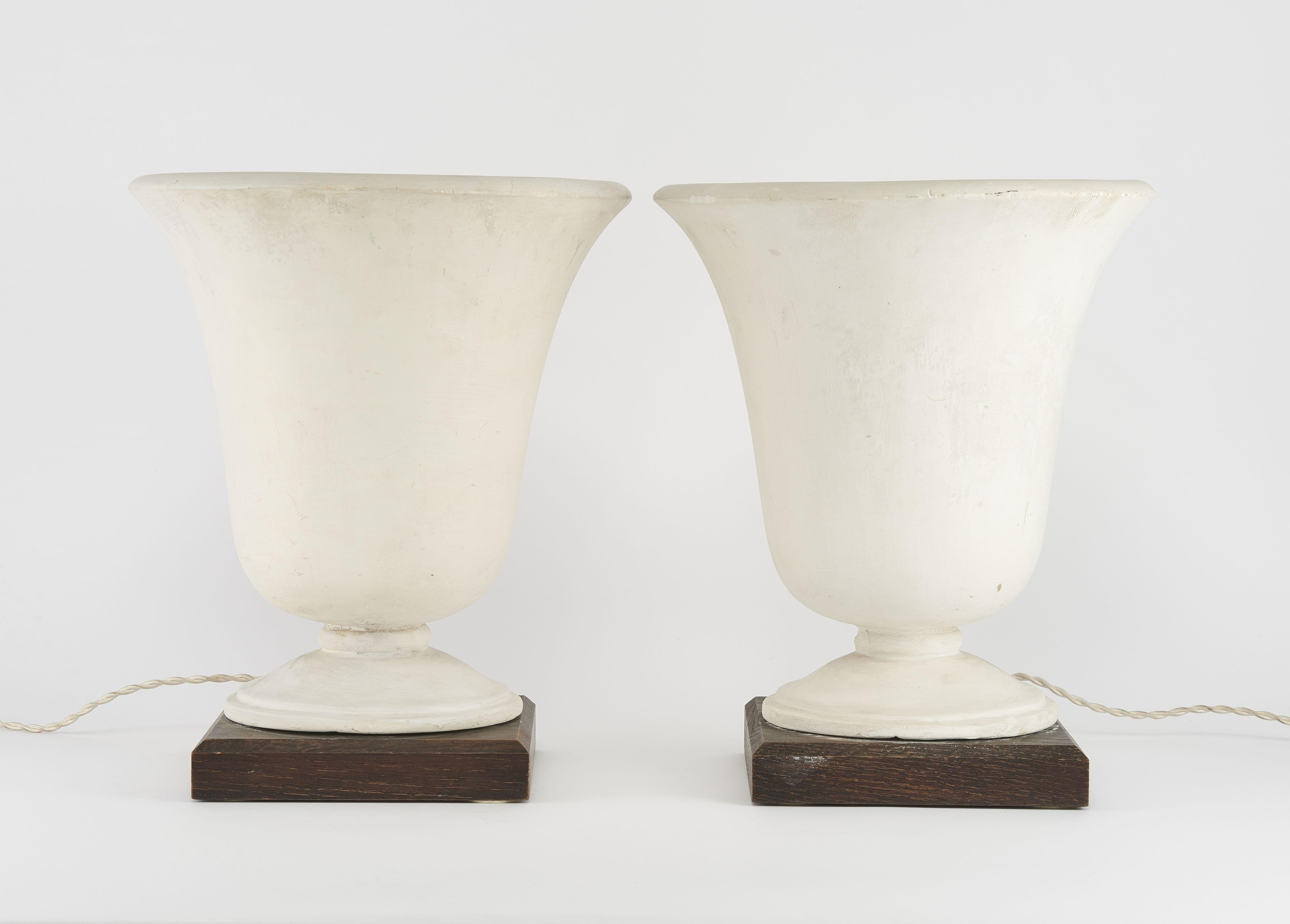 Plâtre patiné blanc et piètement en bois, H 40 cm