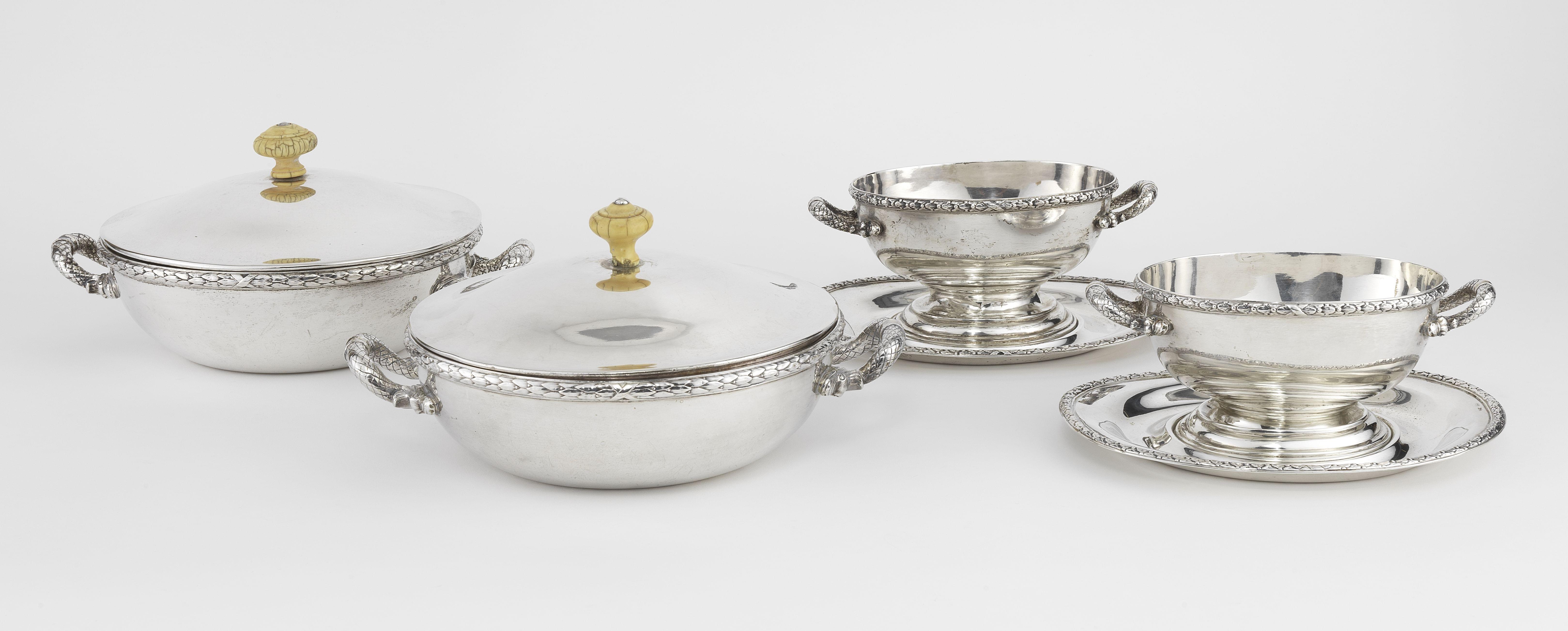 257. Ensemble d'assiettes et plats à bordure de ruban croisé et armor...