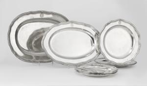 Comprenant: 3 assiettes (N°132,158 et 240), 2 plats ronds (N°1 e...