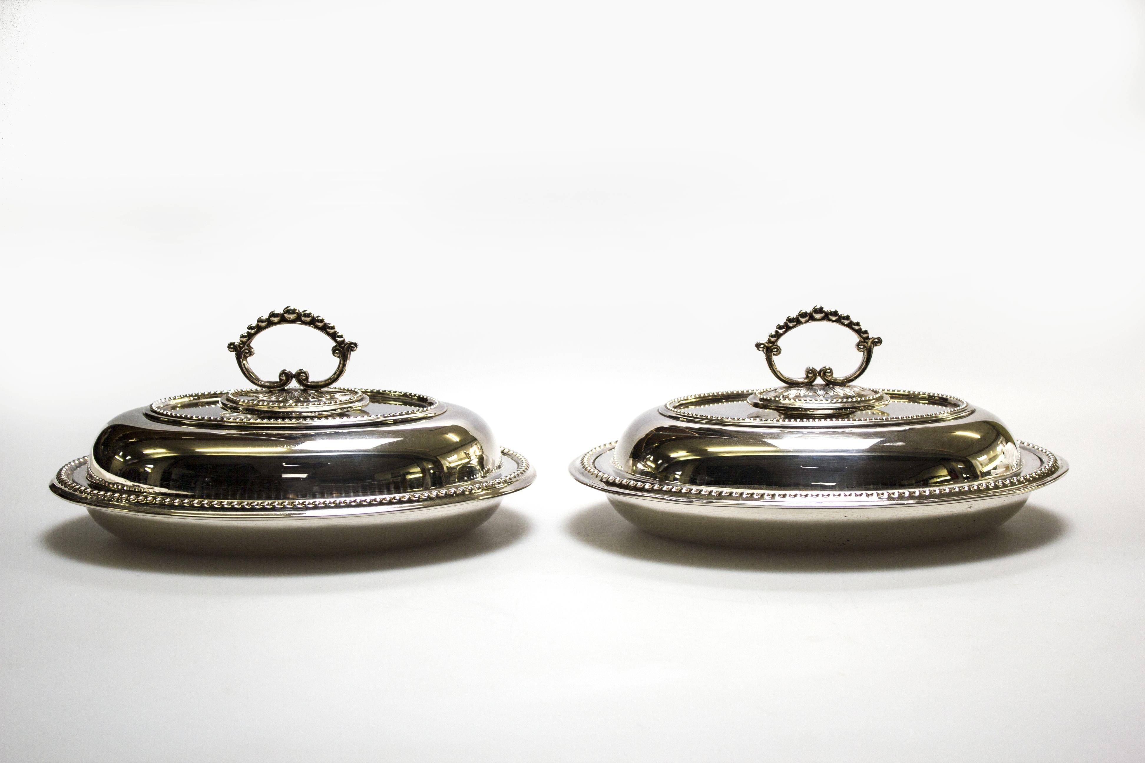 3267. Paire de légumiers ovales à bordures de perlettes et anses détachables