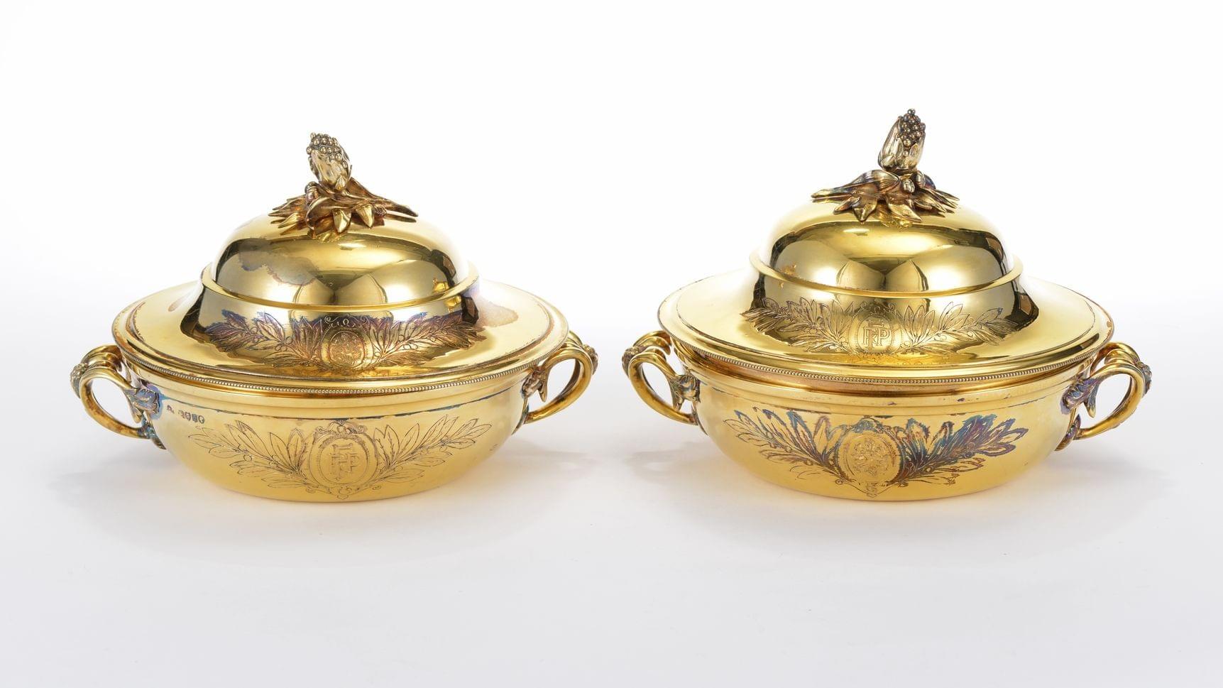 45. Piaget, paire de boutons de manchettes sertis de médailles cisel...