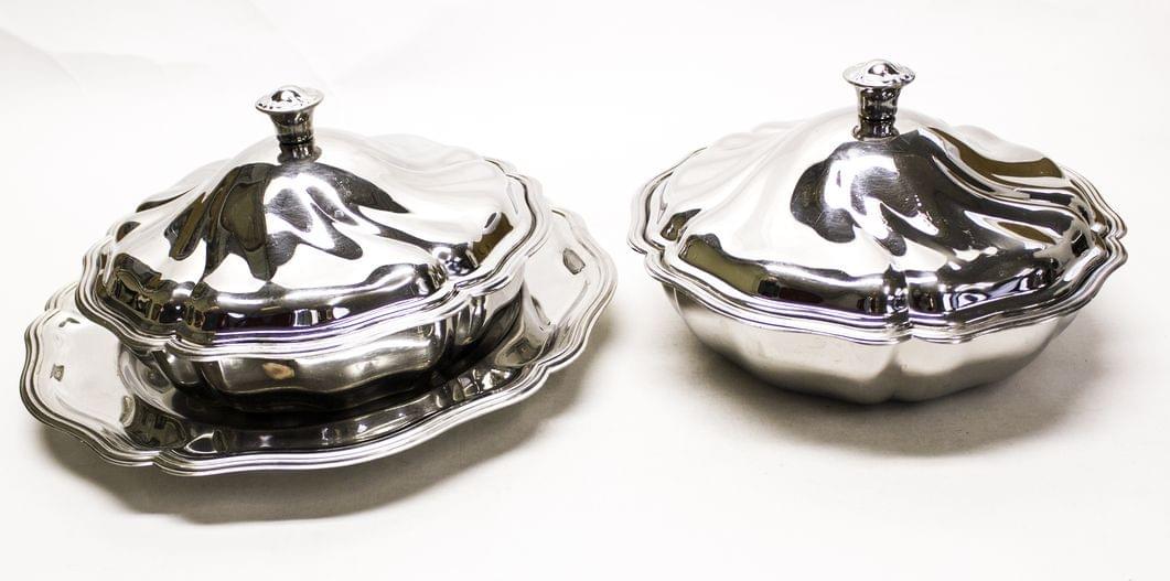 114. Paire de salerons à décor tonneau gravés "Без соли, без хлеба -...