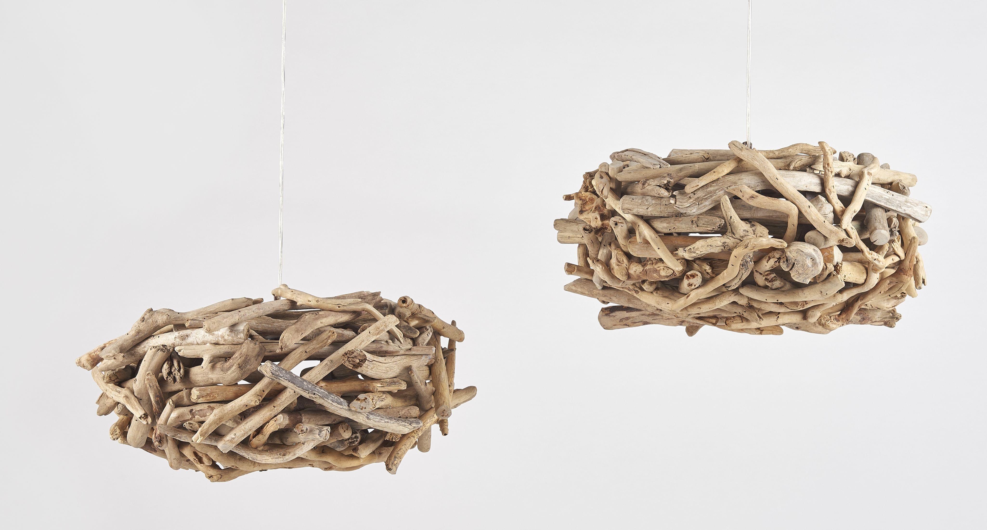 Bois flotté en nid d'oiseau, armature en métal façon rouillé, D 56 cm