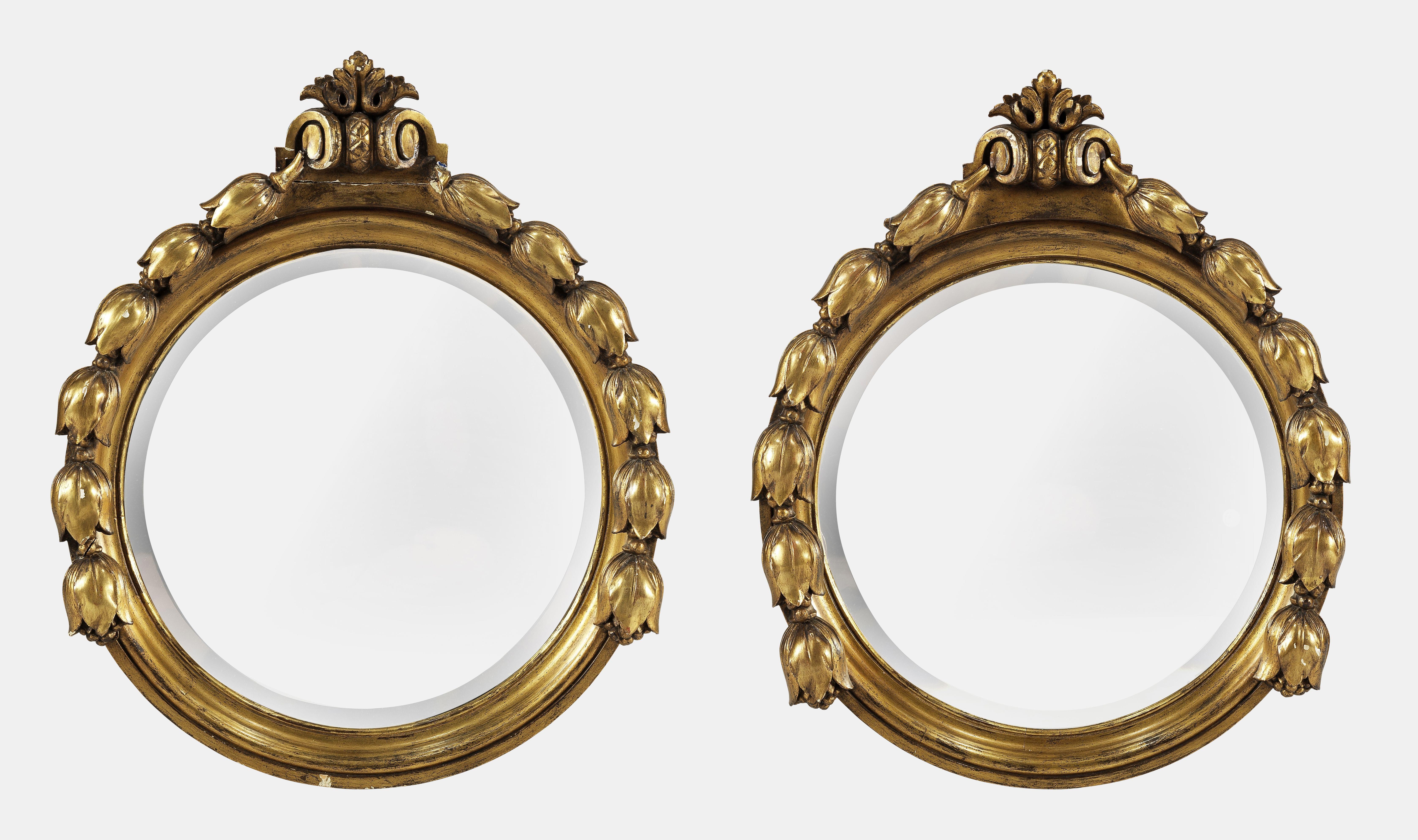 Bois sculpté et doré à motifs de guirlandes de fleurs, D 60 cm