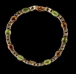 86. Bracelet à maille gourmette serti de citrines et de péridots tai...
