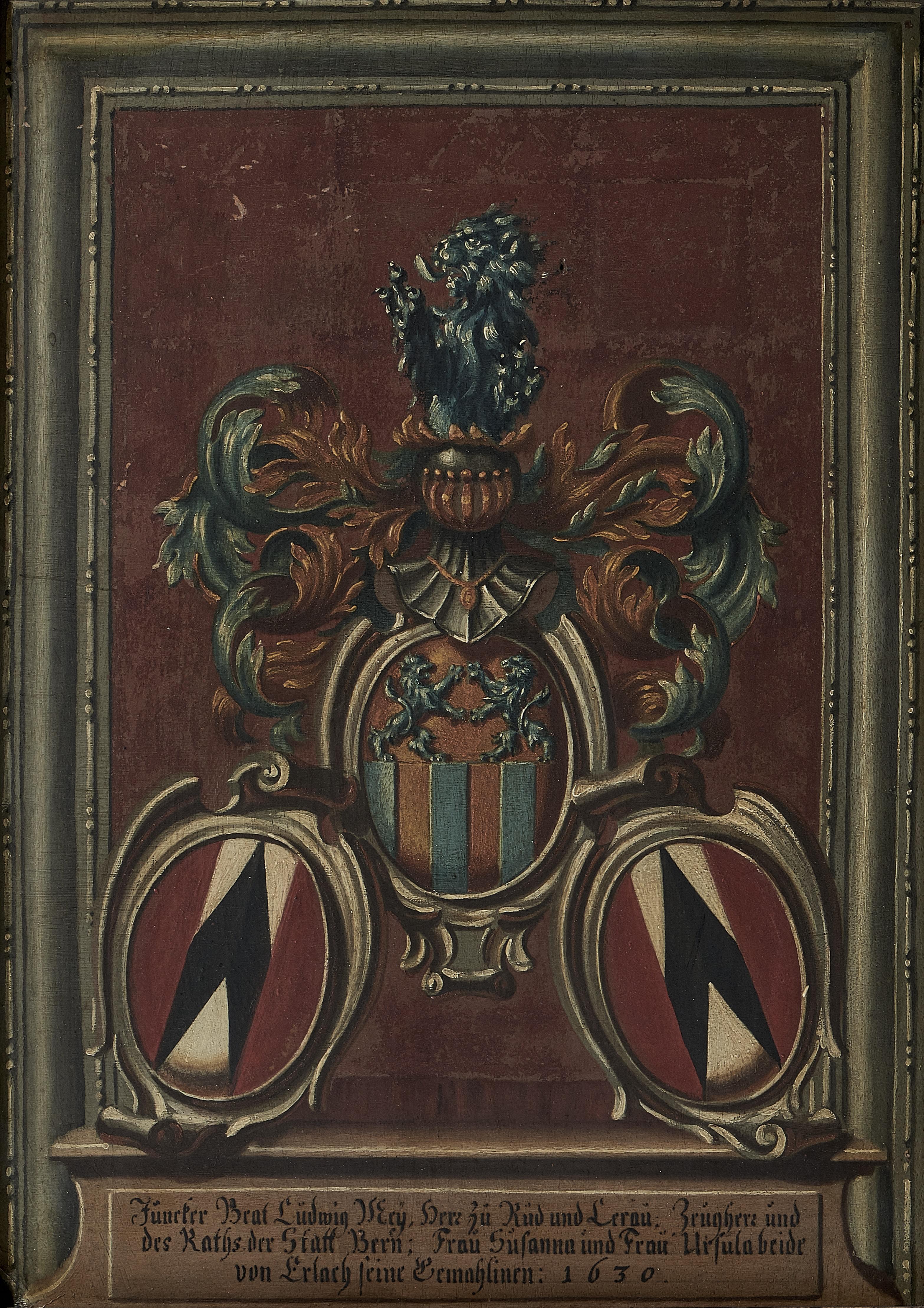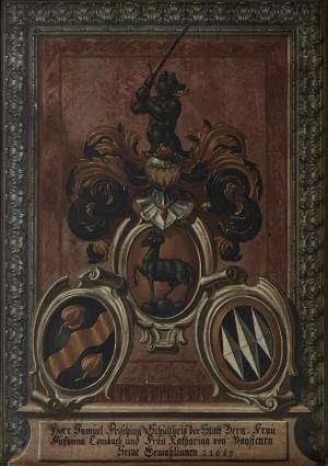 Figurant les armoiries des familles von May-von Erlach et Frisching-Lombach-von Bonstetten, daté1630-1668, XIXe s., 40x38 cm