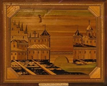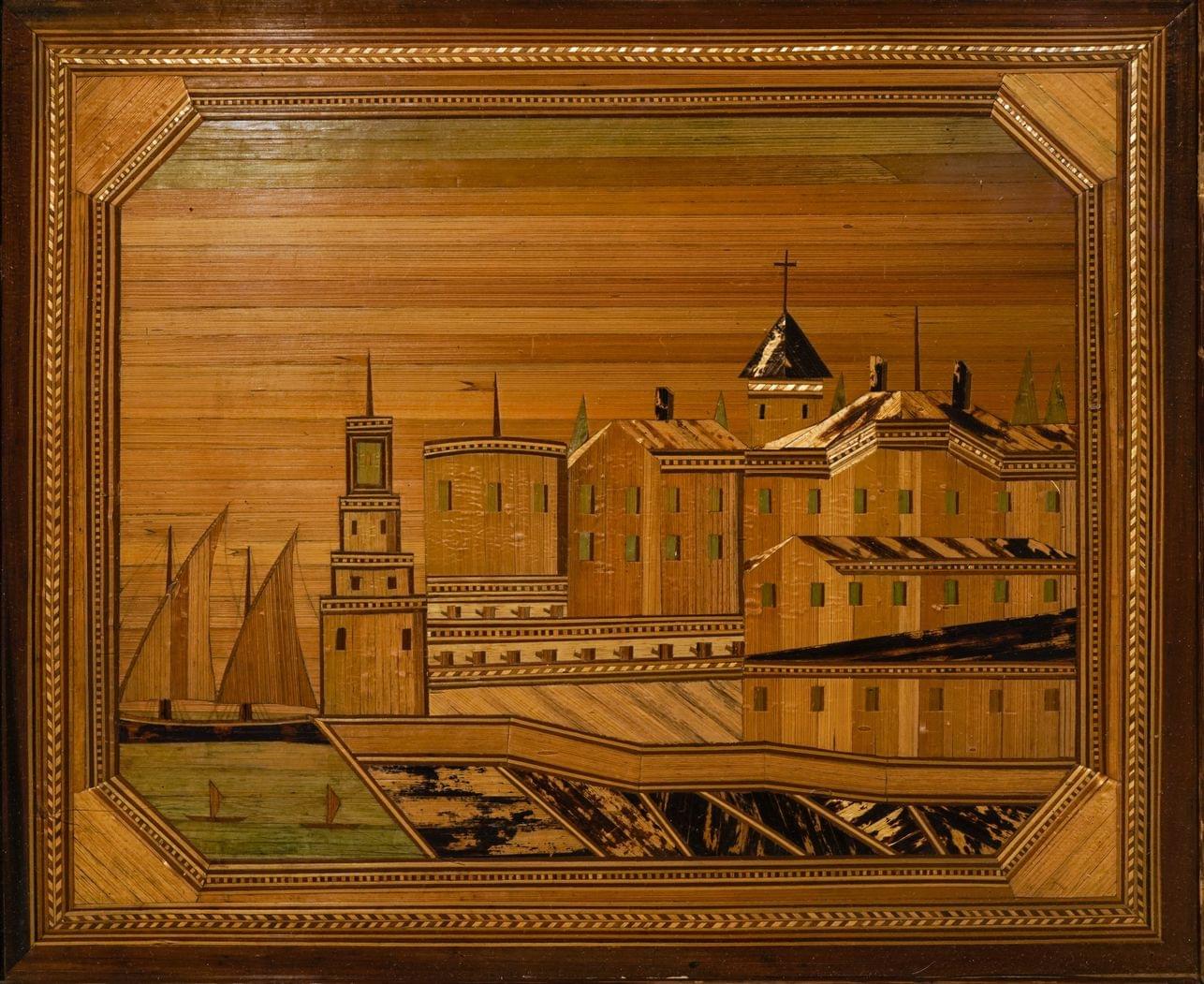 614. Paire de panneaux en marqueterie de paille, Italie, début XIXe s