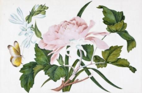 3301. Paire de papiers de riz à décor de papillons et fleurs