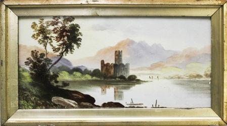 Figurant des paysages lacustres avec ruines, 15,5x30 cm