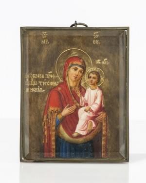 53. Mère de Dieu de Tichwin, icône sous verre recto verso, l'un des...