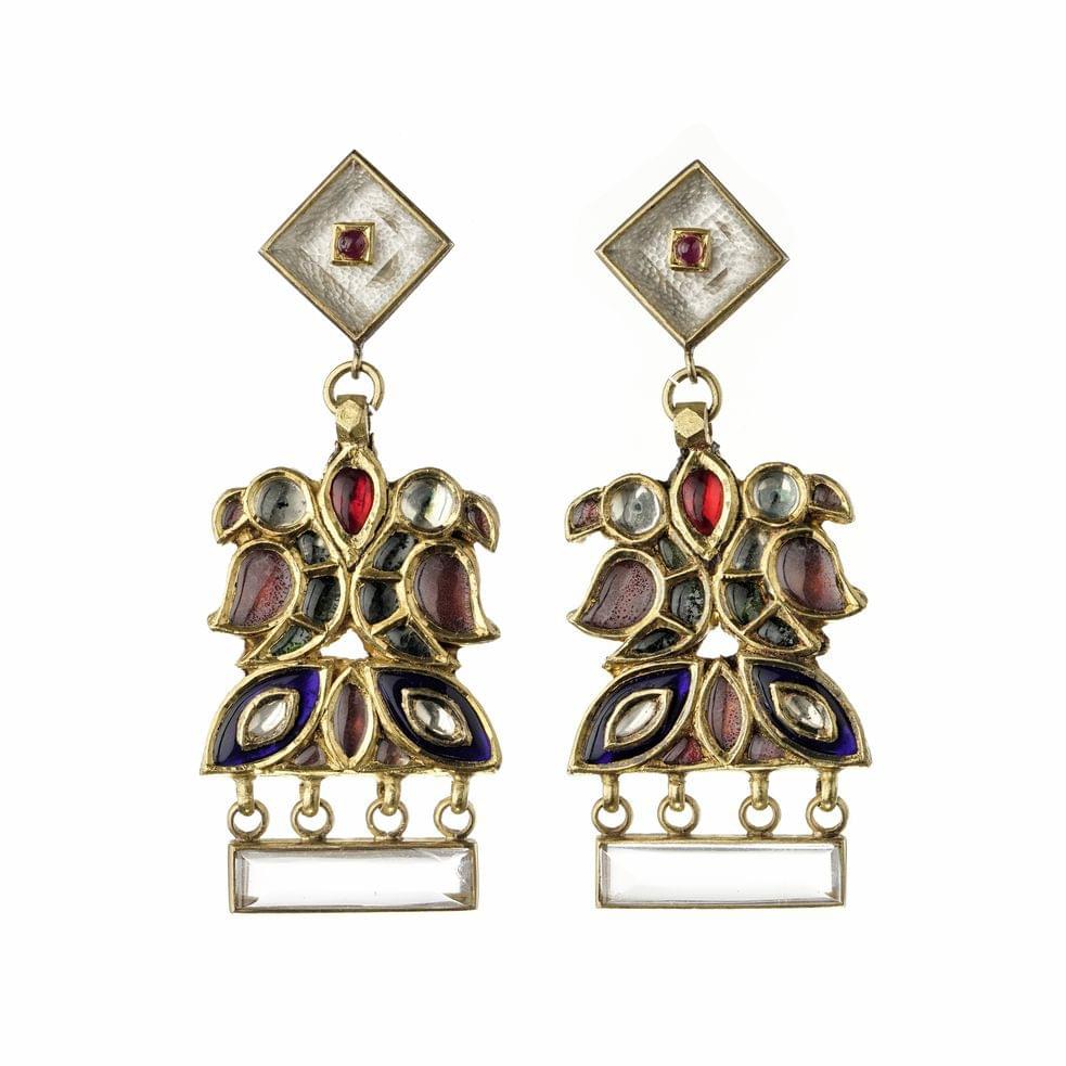 En forme de croissants à motif de filigrane, or, 10 g. Attaches...