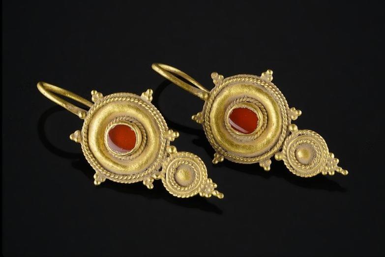 1000. Paire de pendants d'oreilles sertie de cornaline de style proche ou moyen-oriental