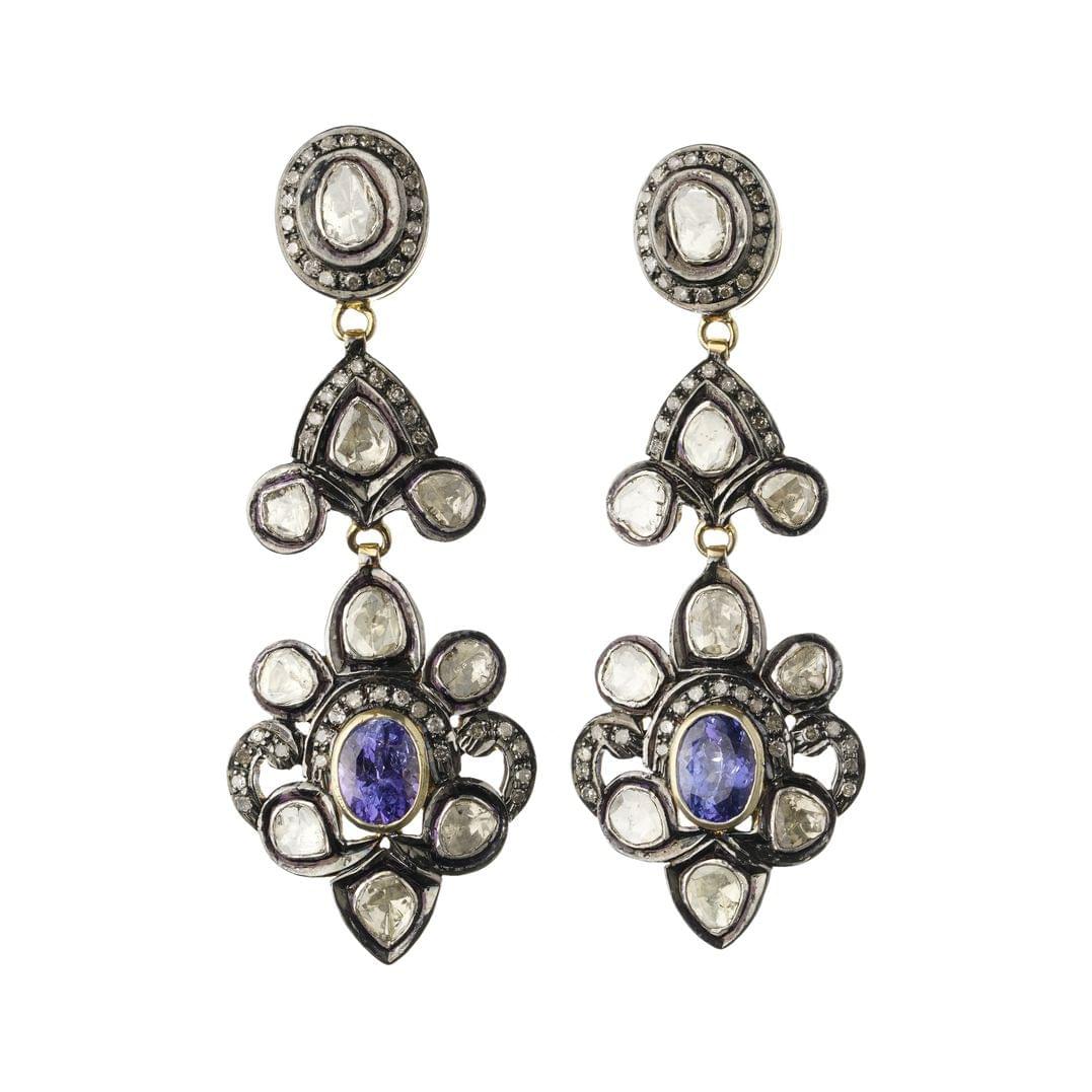 3140. Paire de pendants d'oreilles sertis de tanzanites entourées et surmontées de diamants en table