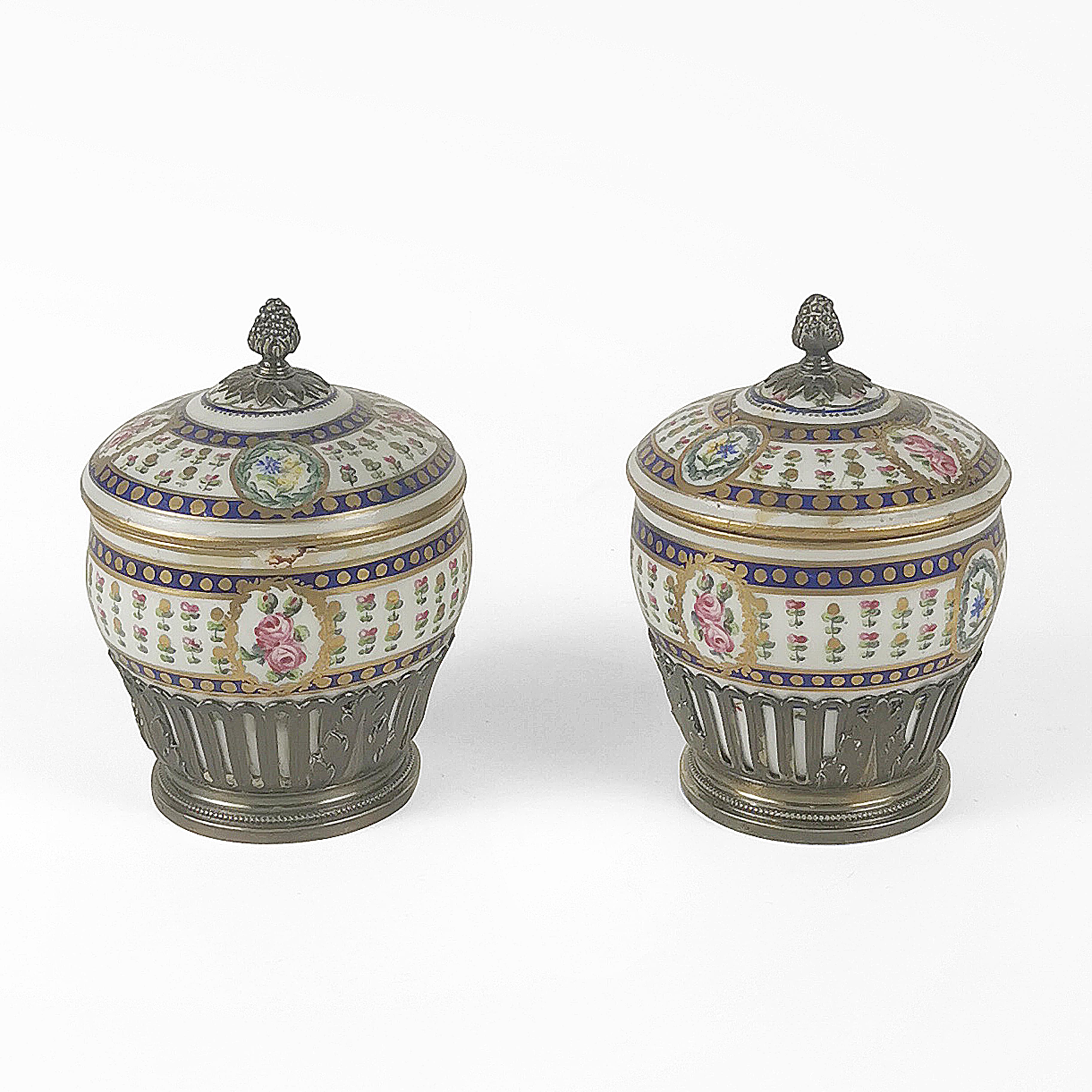4524. Paire de petits vases couverts à décor de médaillons fleuris