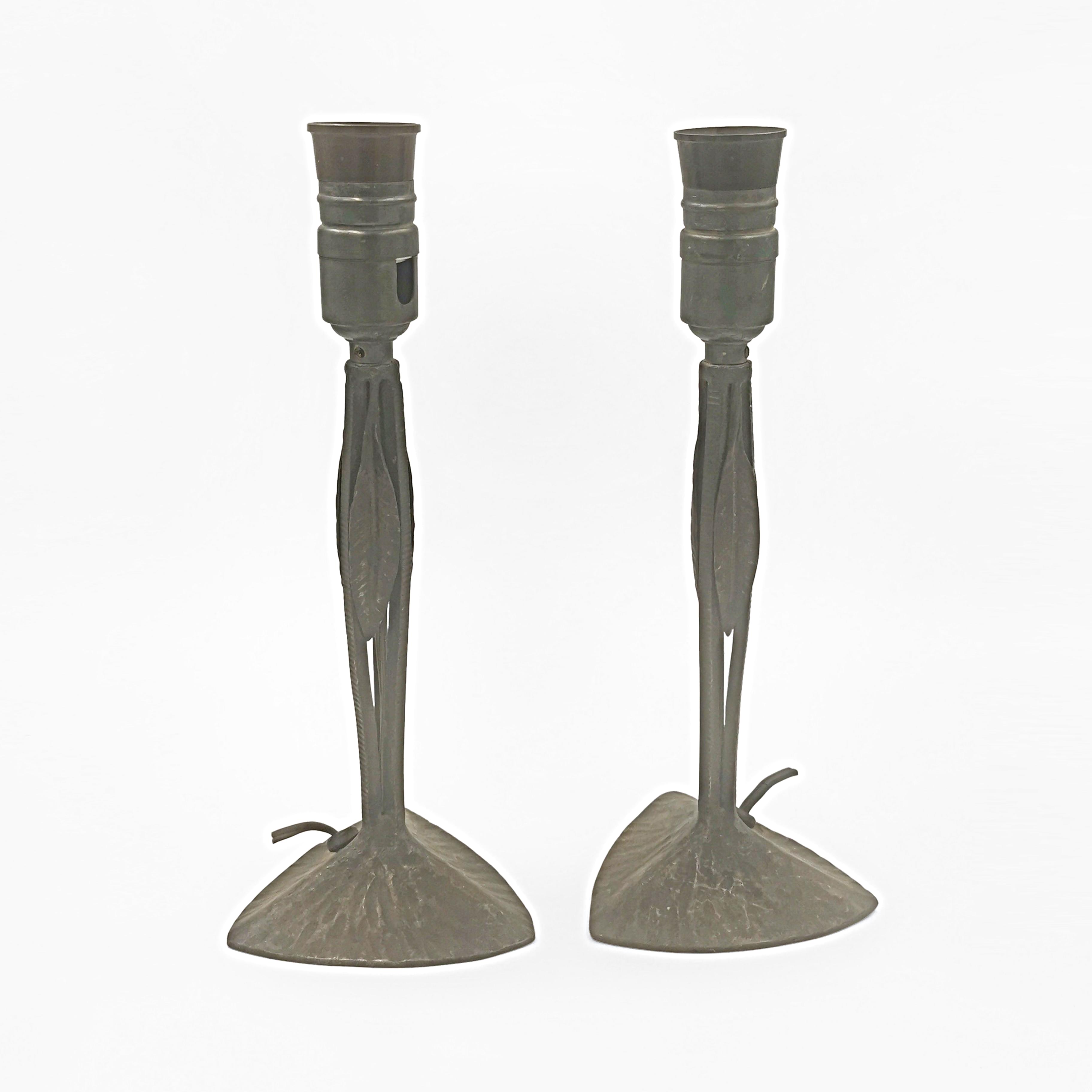 1. Paire de flambeaux à décor repoussé de larges fleurs et acanthes
