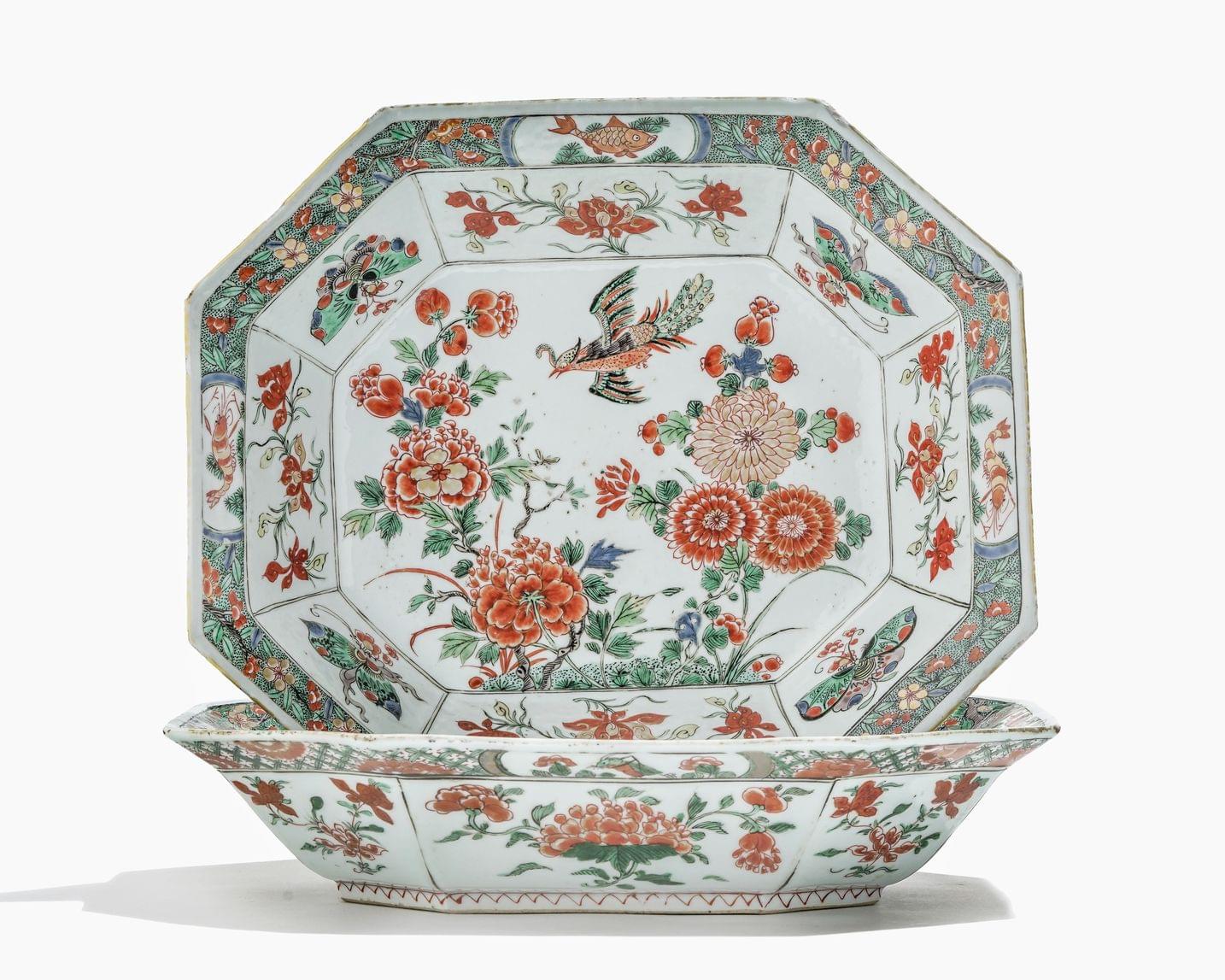 790. Paire de plats octogonaux famille verte, Chine, époque Kangxi (1661-1722)