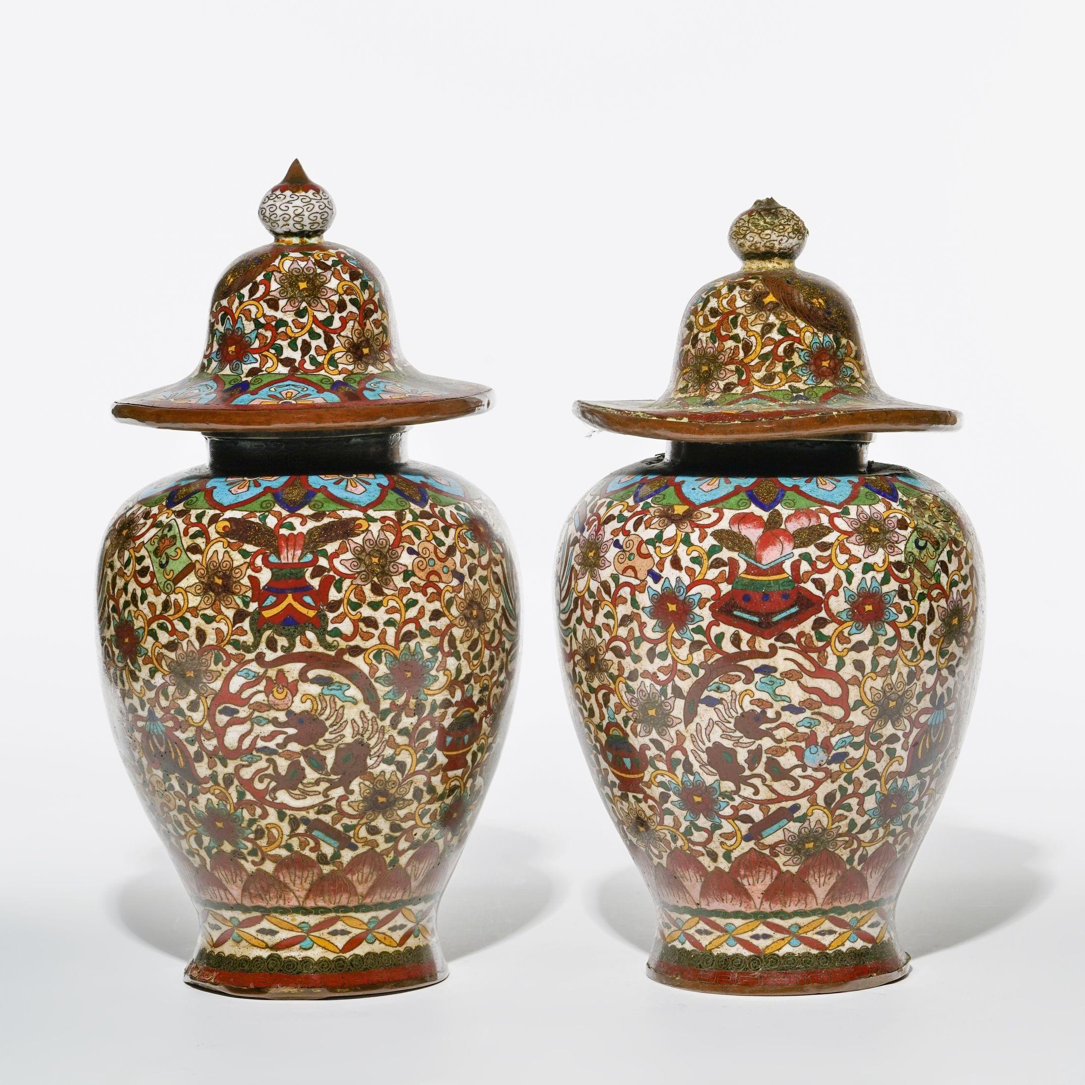 3667. Paire de potiches couvertes en cloisonné, Chine, dynastie Qing (1644-1912)