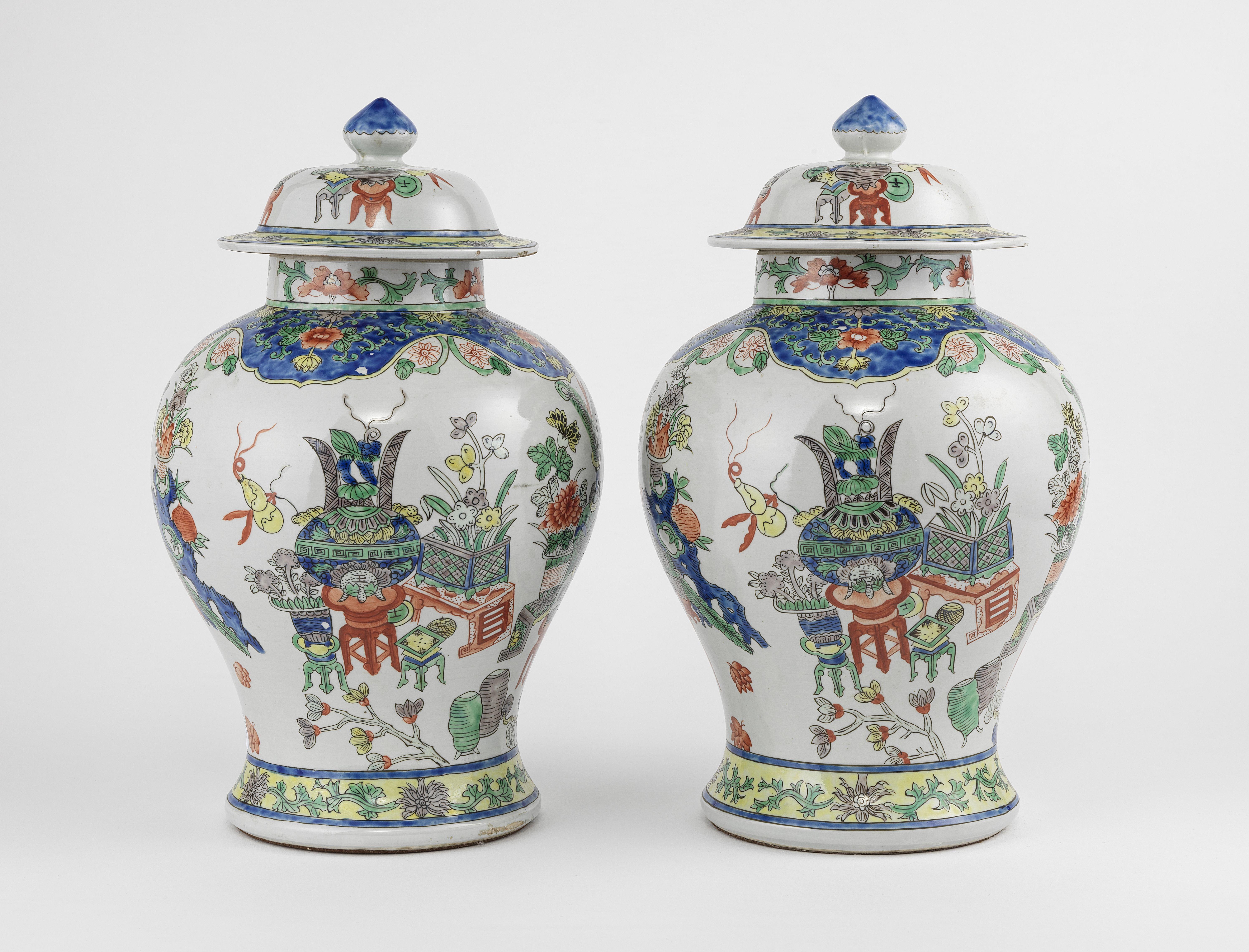 5279. Paire de potiches couvertes famille verte, Chine XXe s