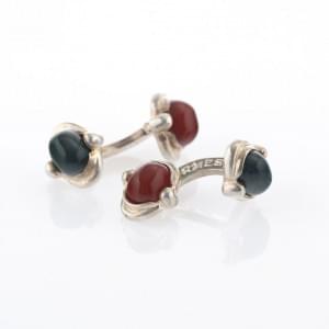 30. Hermès, paire de boutons de manchette sertis de cabochons de cor...