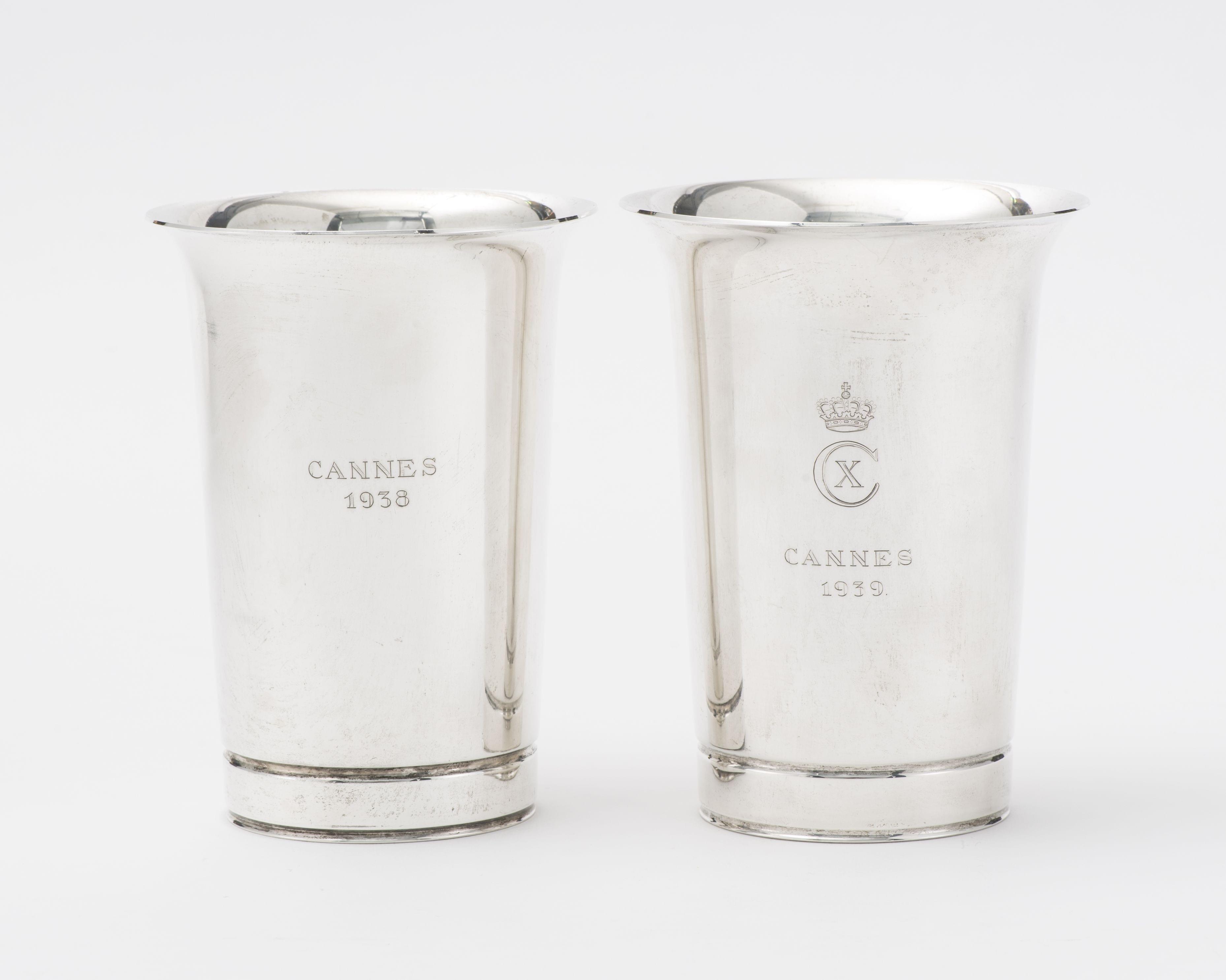 174. Paire de seaux à bouteille gravés du monogramme de Christian X du Danemark et dédicacé Cannes 1938 et 1939