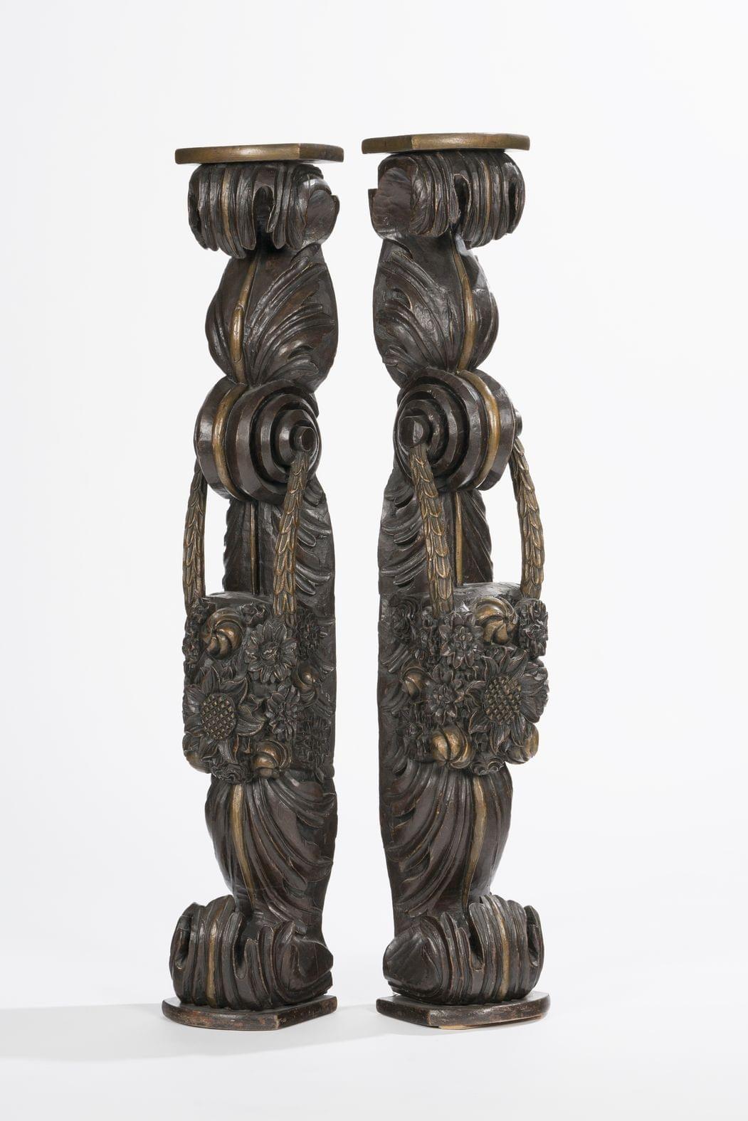 Bois sculpté à décor d'enroulements et guirlandes fleuries, H 130 cm