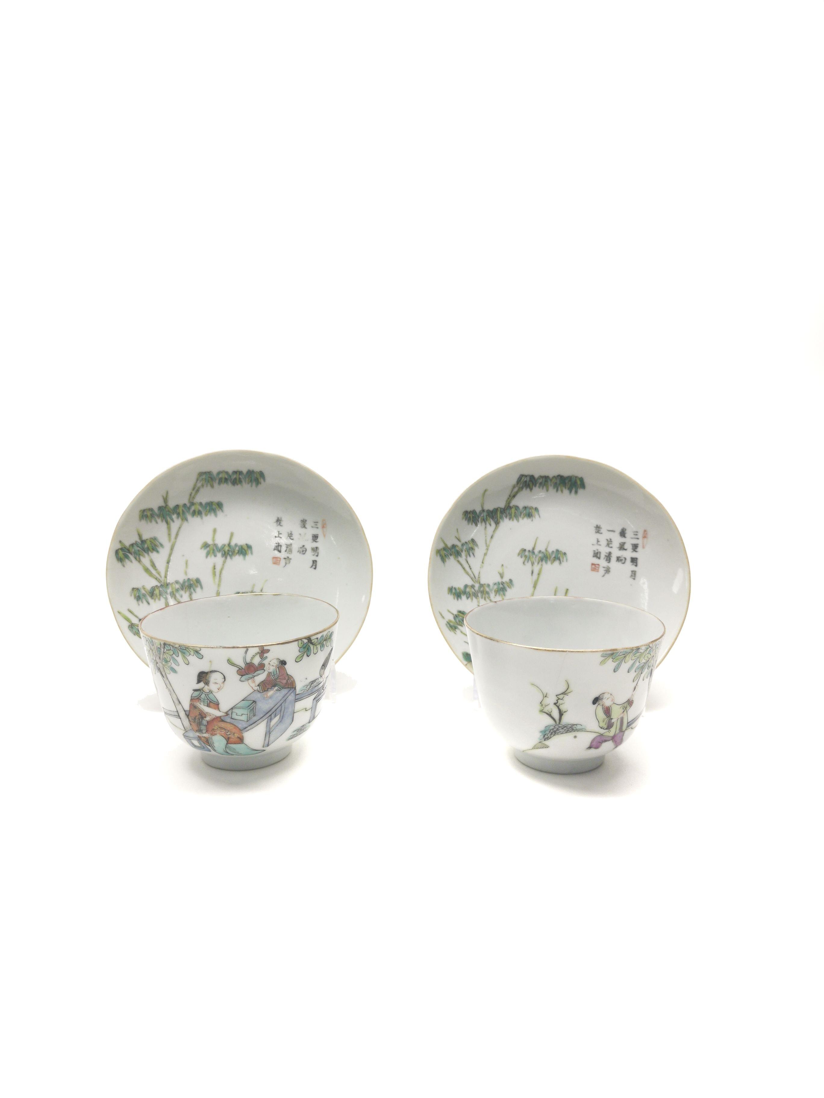 336. Deux tasses néoclassiques l'une à décor pourpre et or mat et bri...
