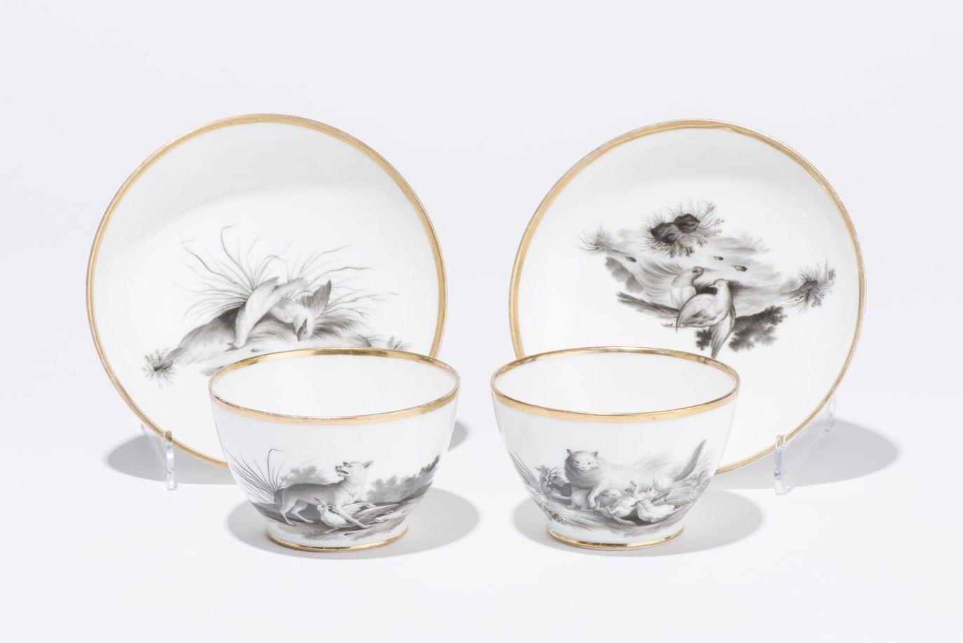 Porcelaine à décor d'animaux en grisaille, Paris, XIXe s, D 8,5 cm