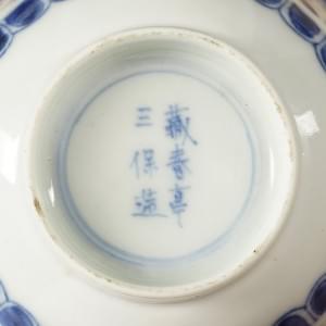 Porcelaine bleu blanc à décor de motifs floraux, marque sous la base, H 8 cm