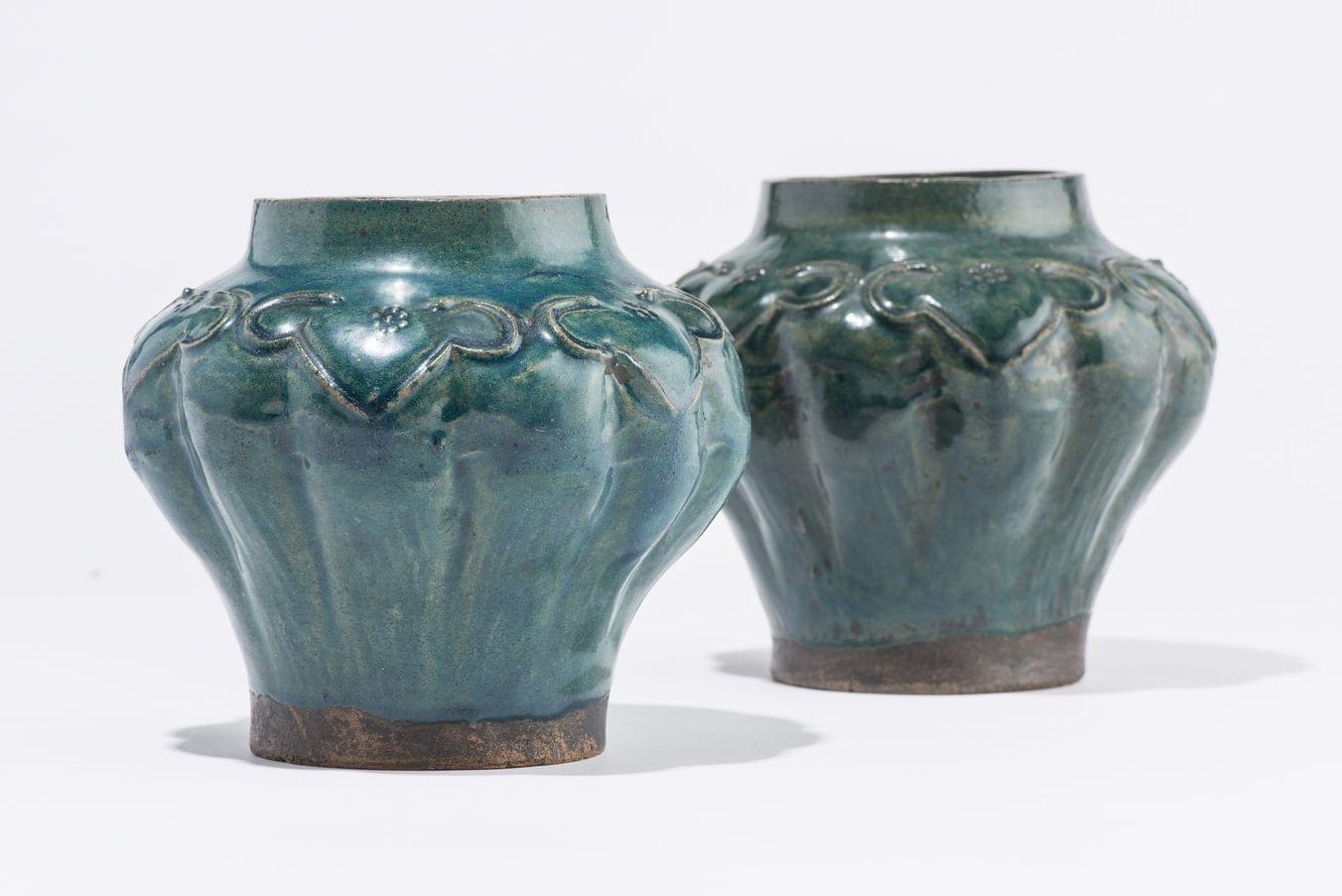 Céramique émaillée bleue à décor stylisé en relief, Chine, dynastie Ming (1368-1644), H 15 cm