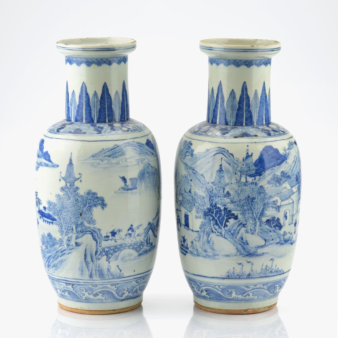 Porcelaine à décor blanc et bleu de paysages, Chine, début Xxe s, H 45 cm