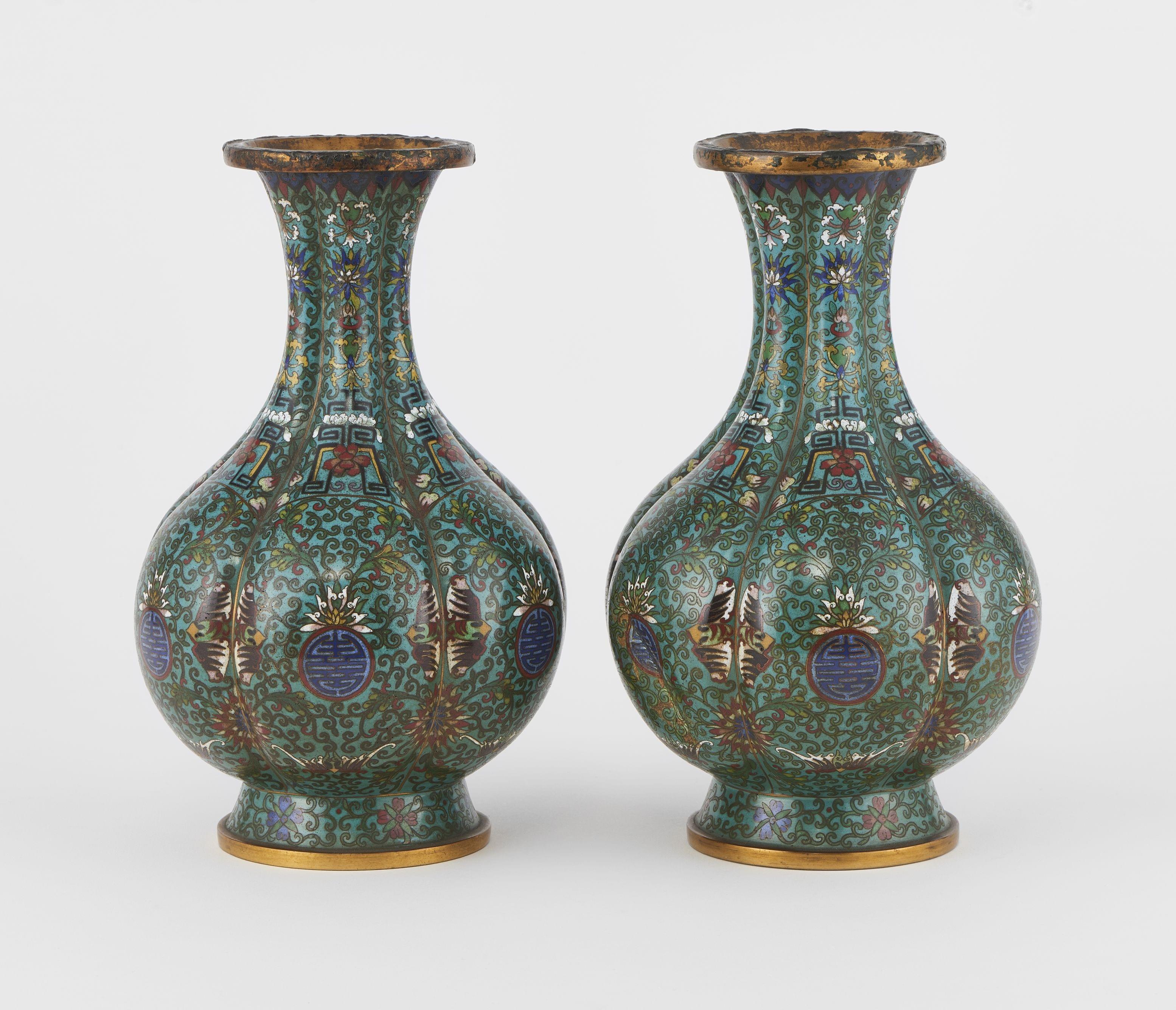 826. Paire de vases balustre en cloisonné, Chine, époque République (1912-1949)