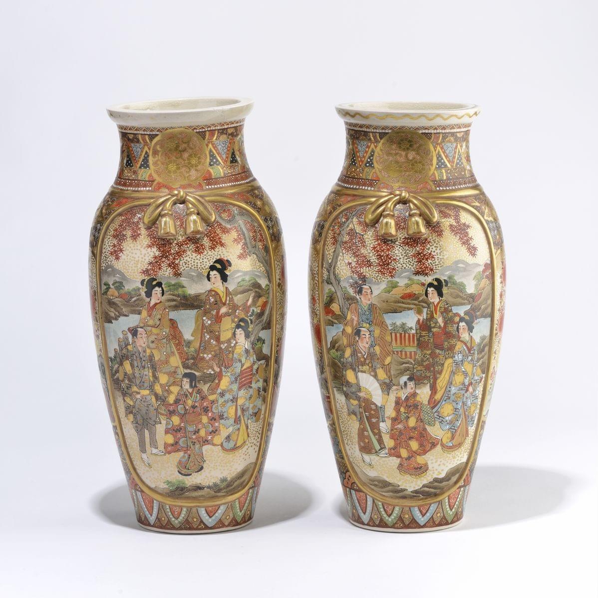 Faïence polychrome et or, Japon, Satsuma, XXe s, H 38 cm