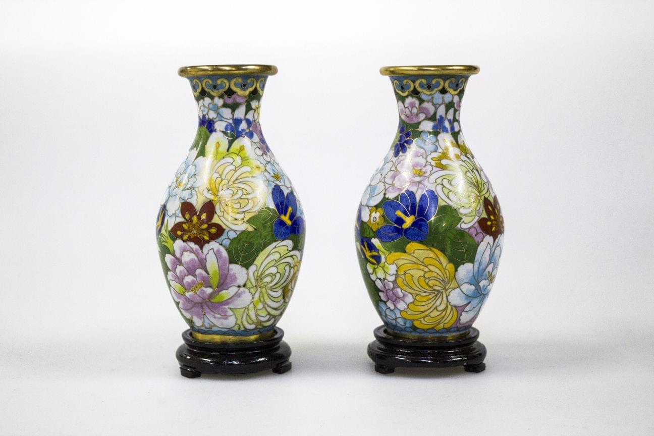 A décor de pivoines en émaux cloisonnés, H 15 cm