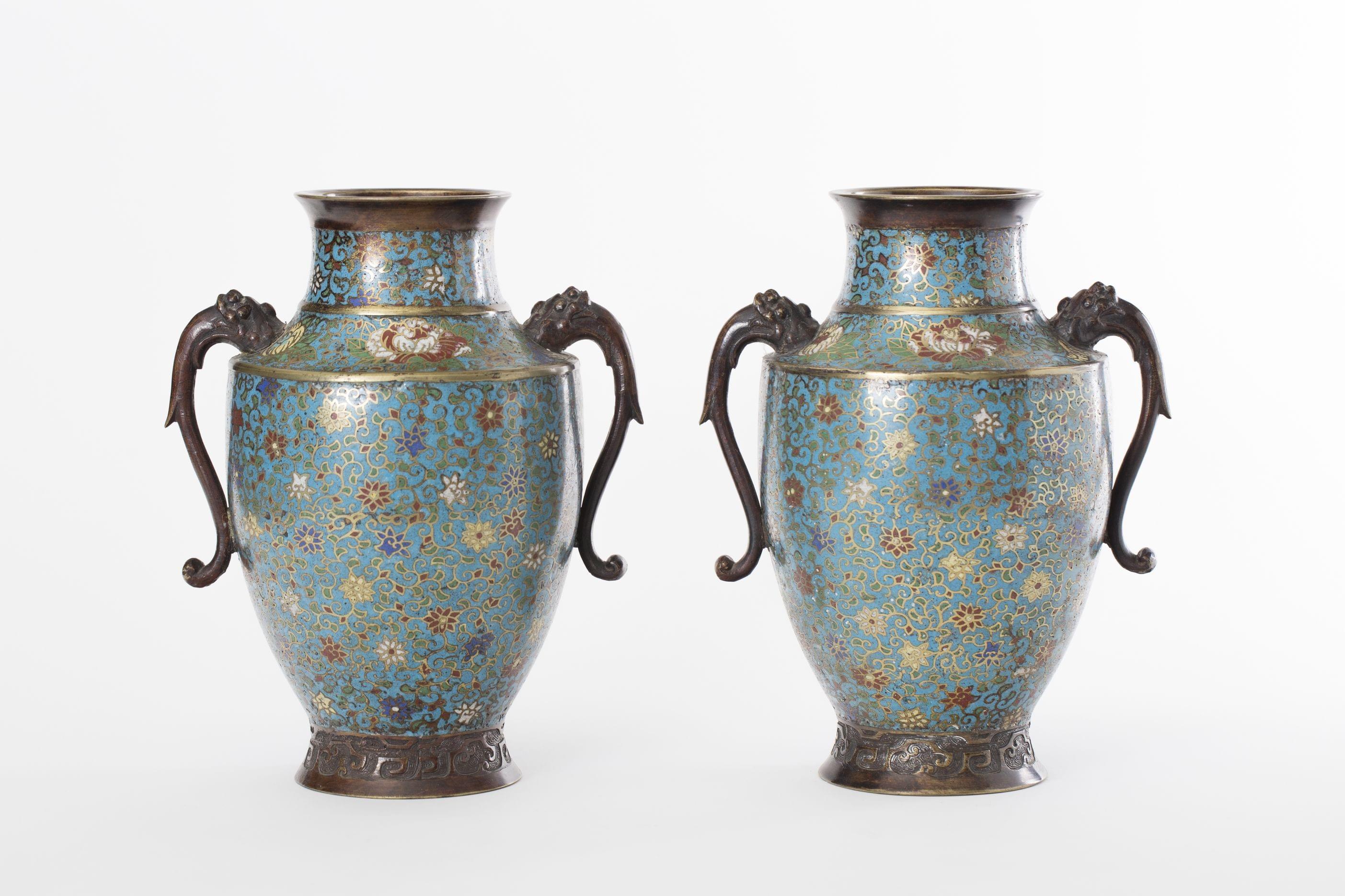 1071. Paire de vases balustres cloisonnés, Chine, dynastie Qing (1644-1912), marque apocryphe de Xuande