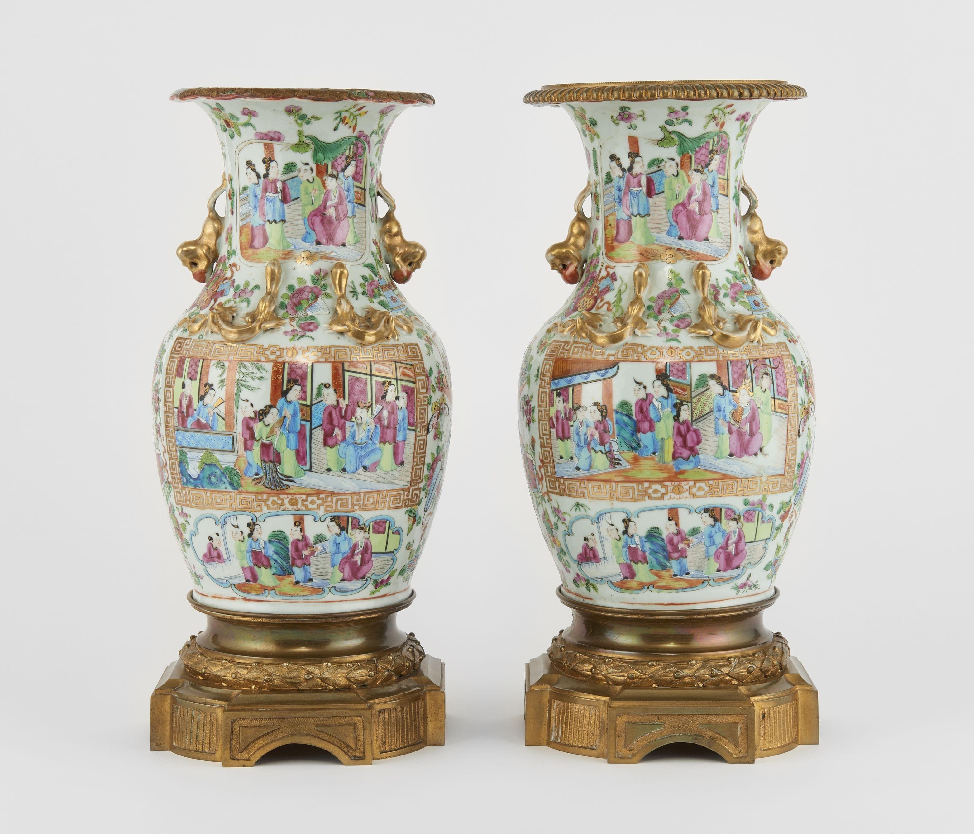 Porcelaine émaillée polychrome, monture de style Louis XVI en bronze doré, H 41 cm