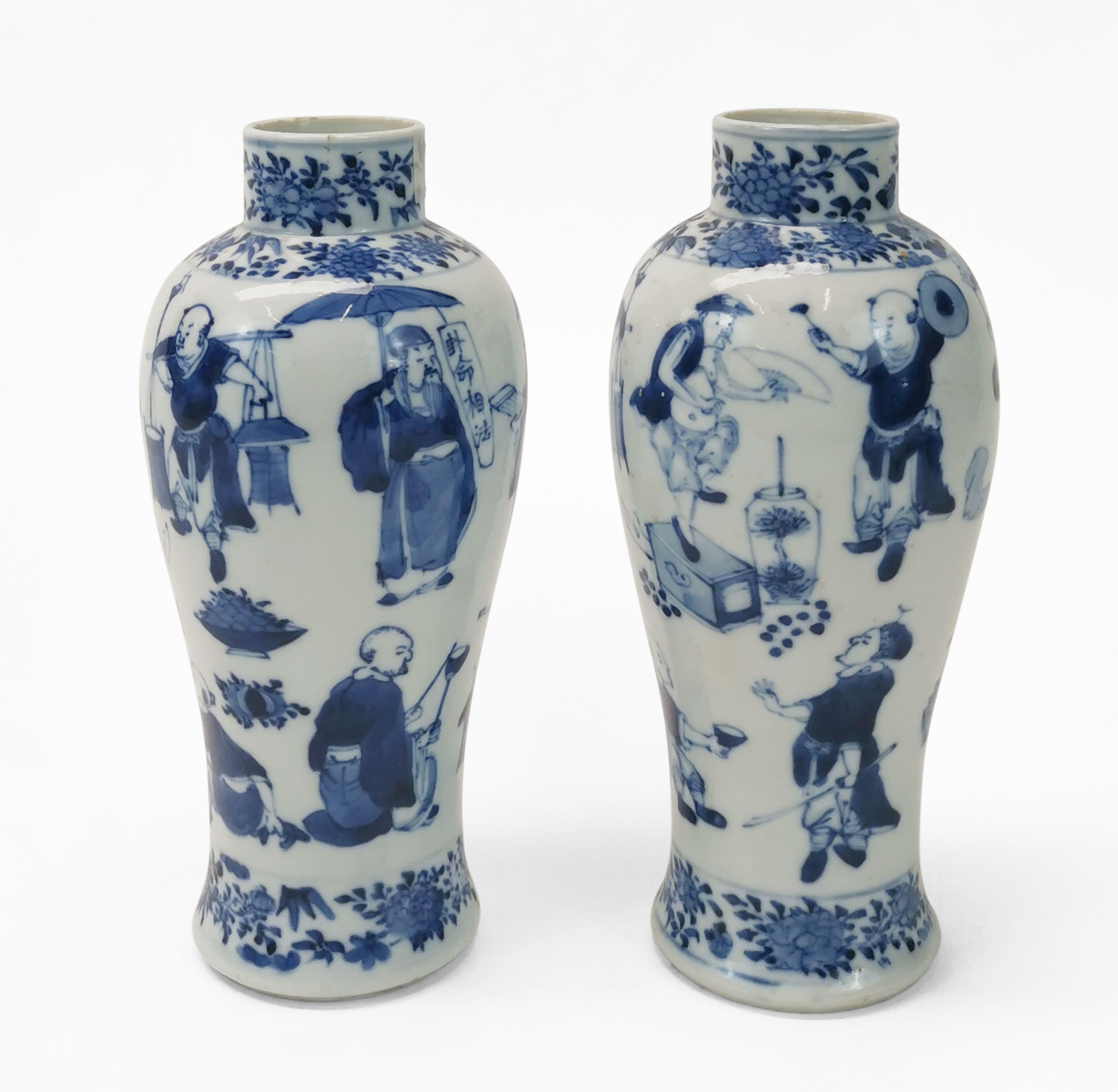 Porcelaine émaillée bleu et blanc à décor de personnages, H 20 cm