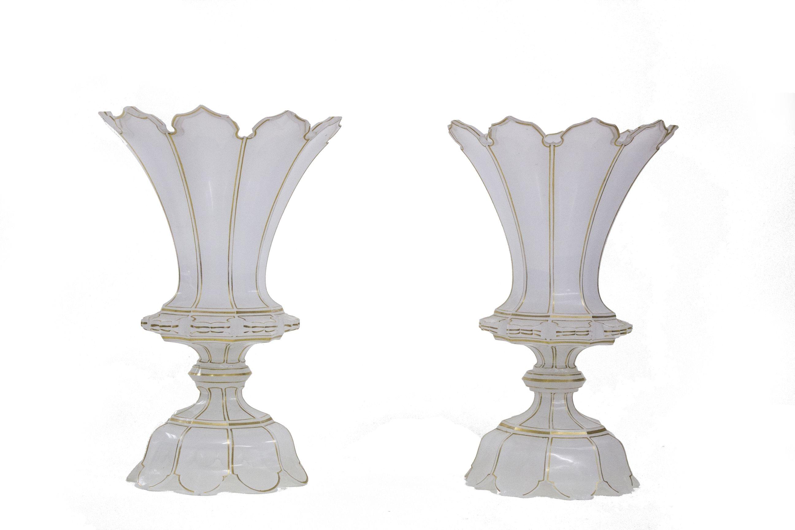 Verre multicouche dégagé à l'acide, à décor d'orchidées, H 23 cm